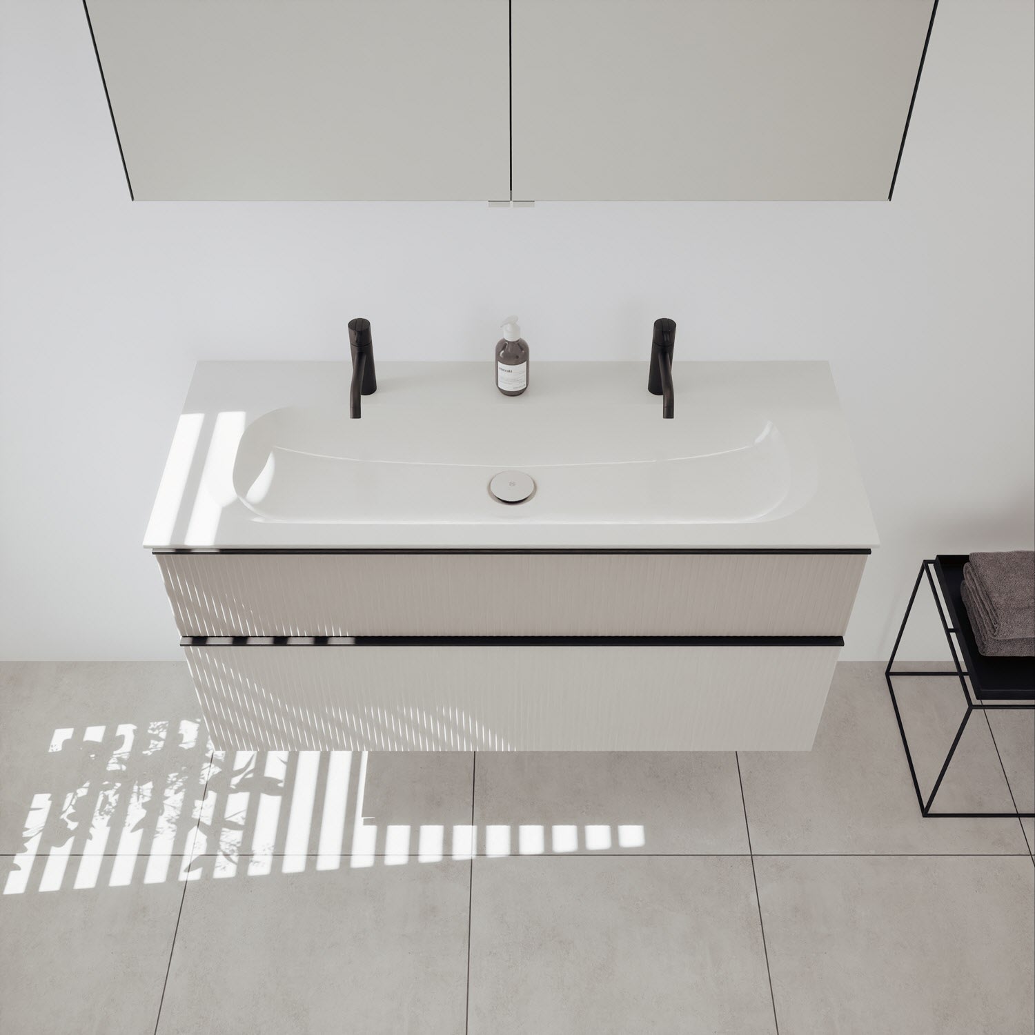 - Spiegelschrank, Waschtischunterschrank, Waschtisch,burgbad cleanFlow, Befestigung außer Stockschrauben