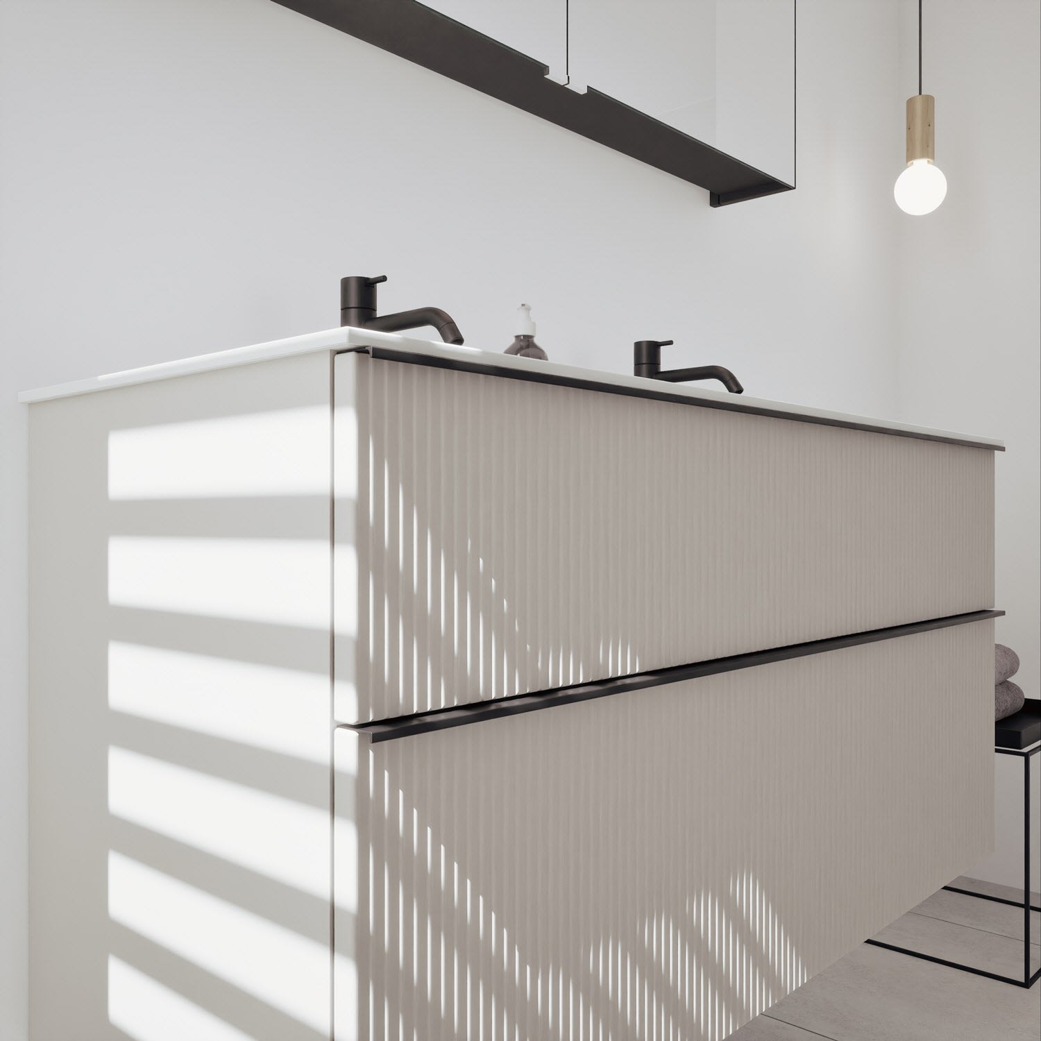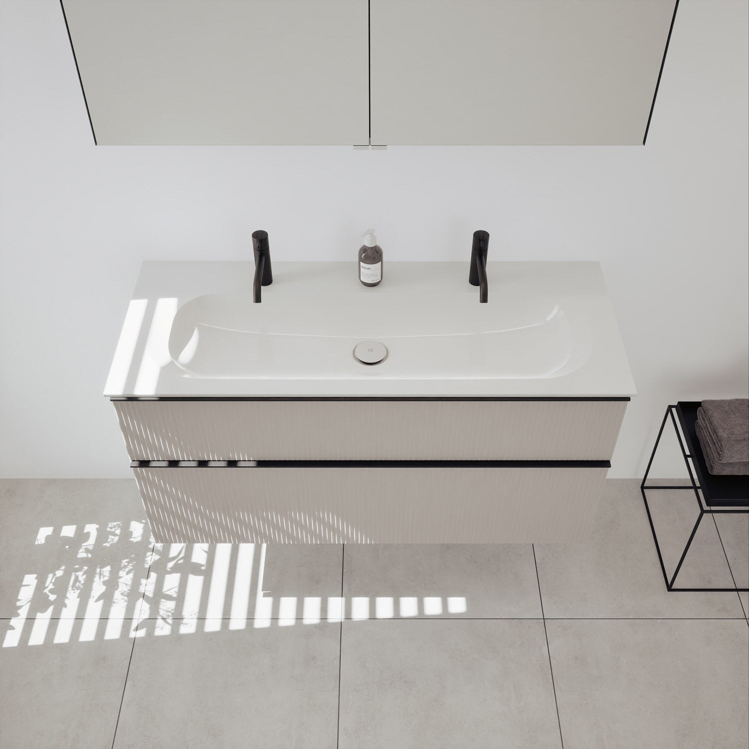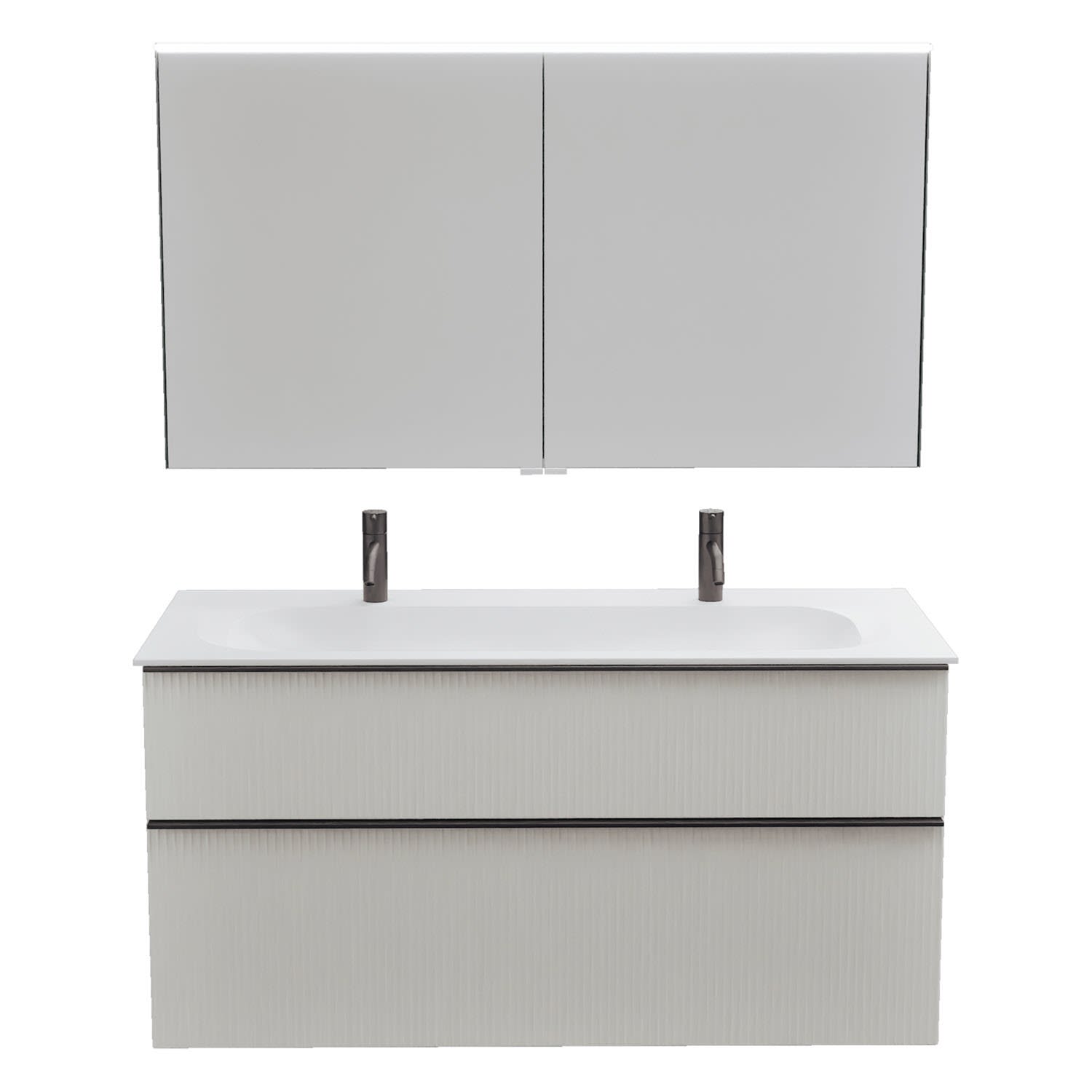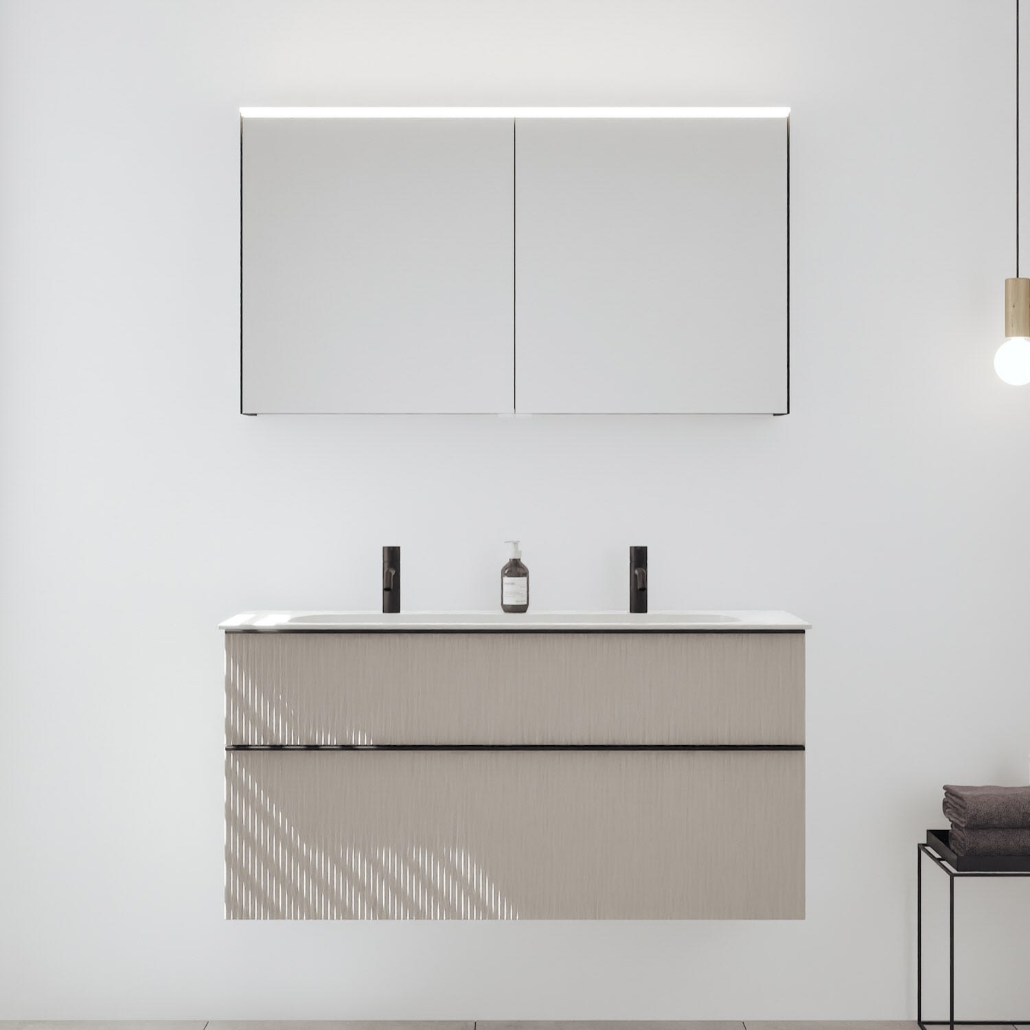 burgbad Fiumo 2.0 Badmöbelset 122 cm mit Waschtisch mit Unterschrank mit Griff G0200 und Spiegelschrank