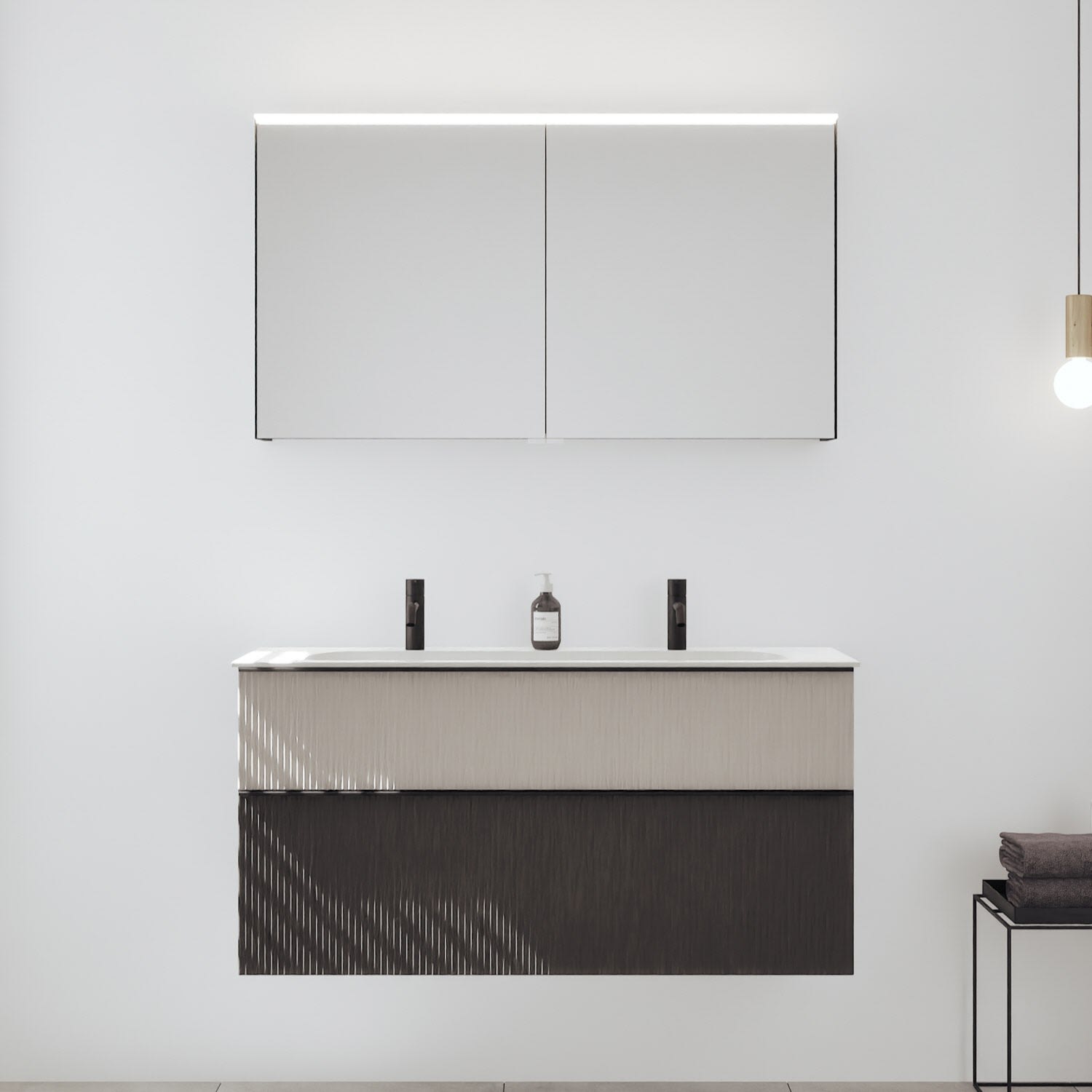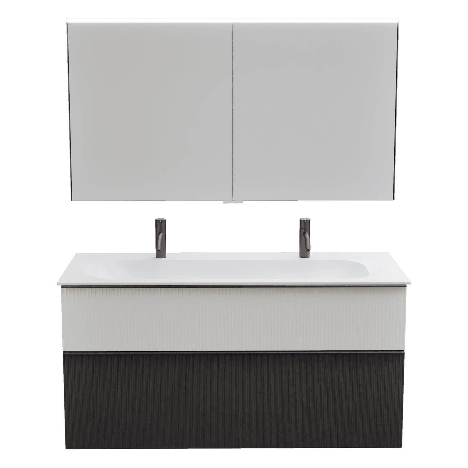 burgbad Fiumo 2.0 Badmöbelset 122 cm mit Waschtisch mit Unterschrank mit Griff G0200 und Spiegelschrank