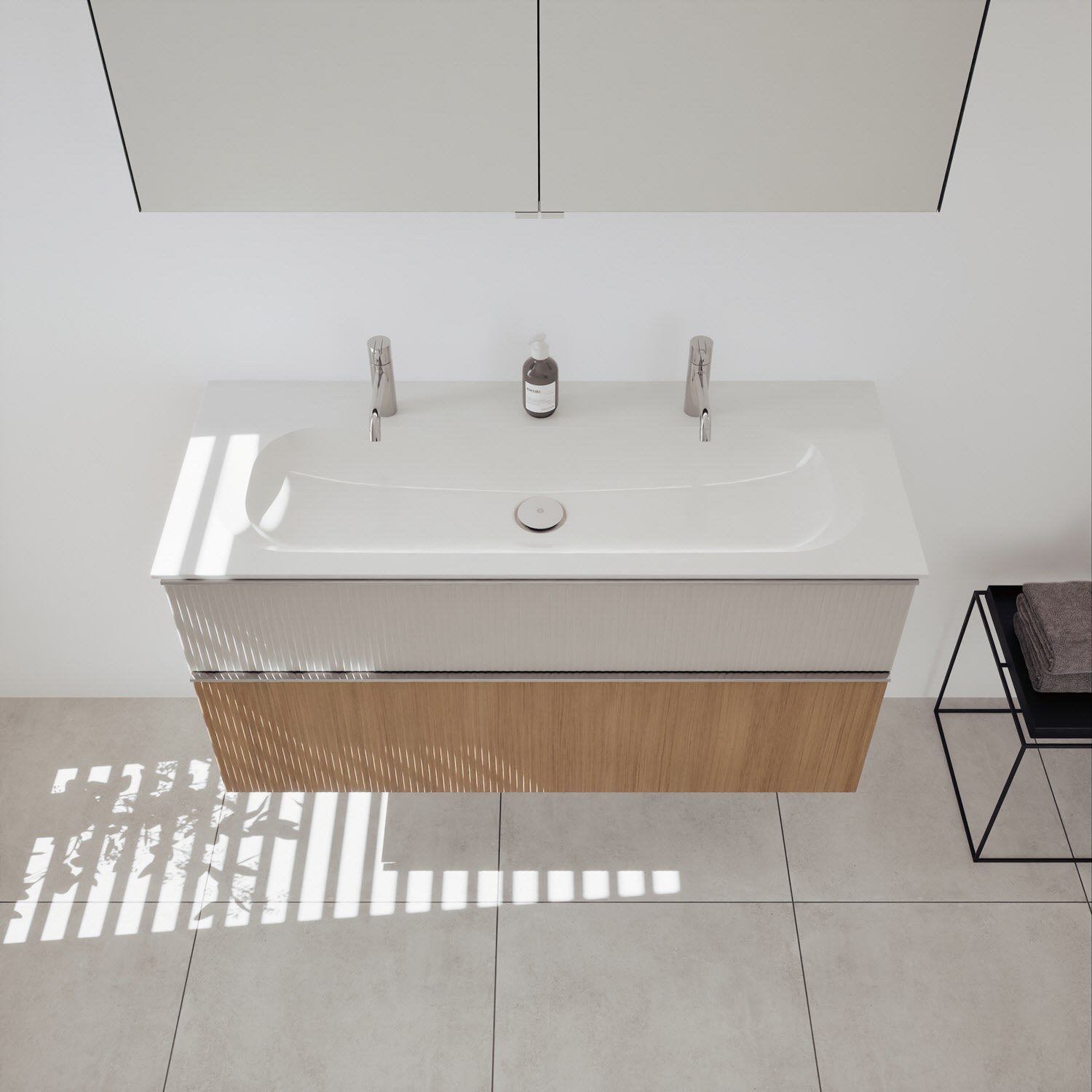 - Spiegelschrank, Waschtischunterschrank, Waschtisch,burgbad cleanFlow, Befestigung außer Stockschrauben