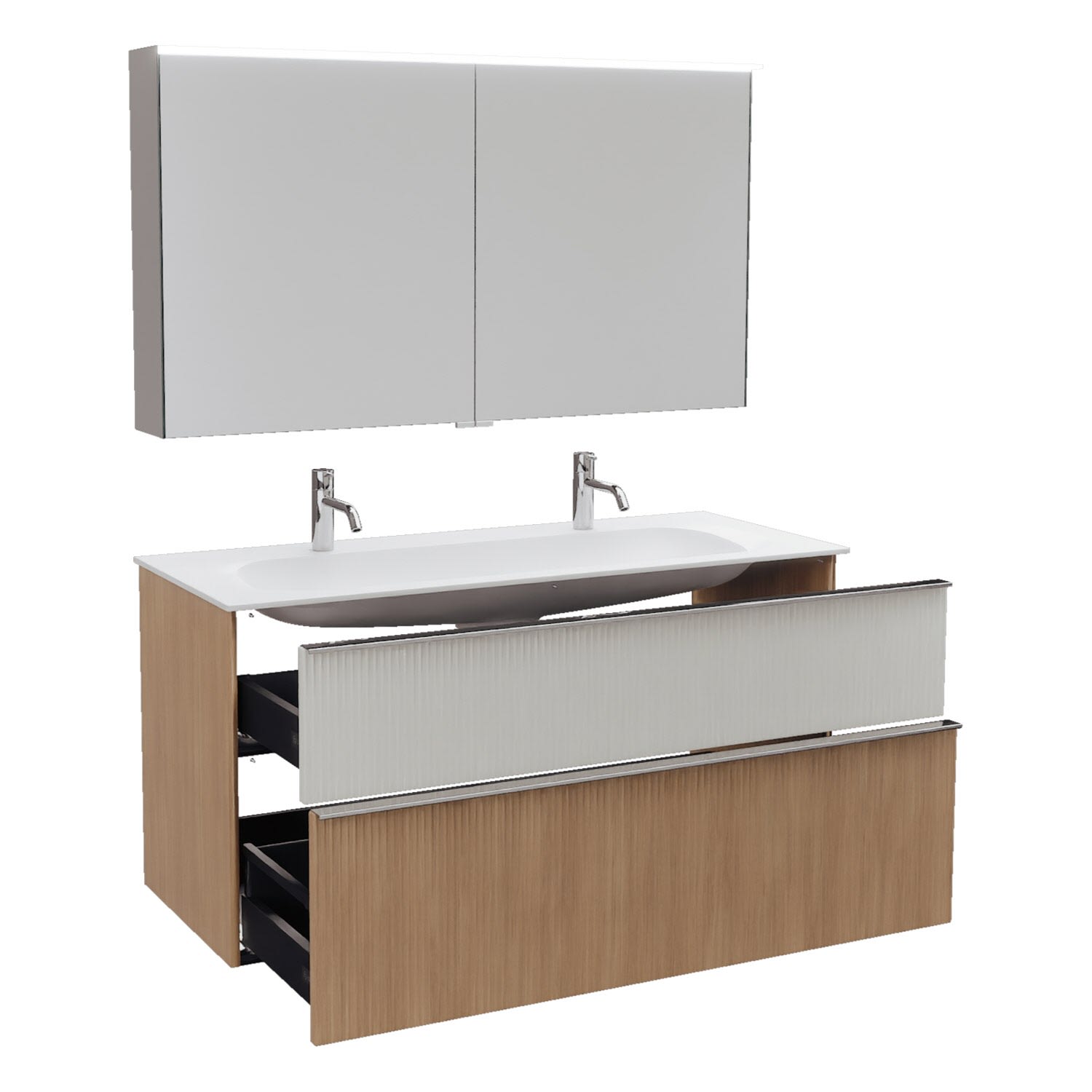 burgbad Fiumo 2.0 Badmöbelset 122 cm mit Waschtisch mit Unterschrank mit Griff G0146 und Spiegelschrank