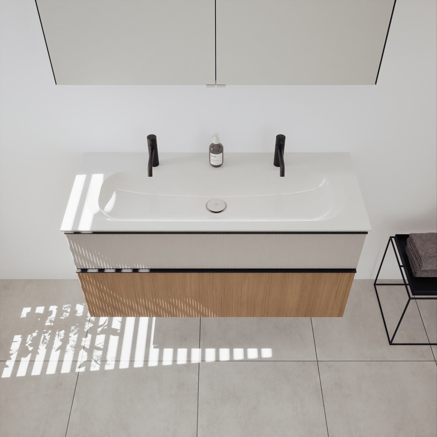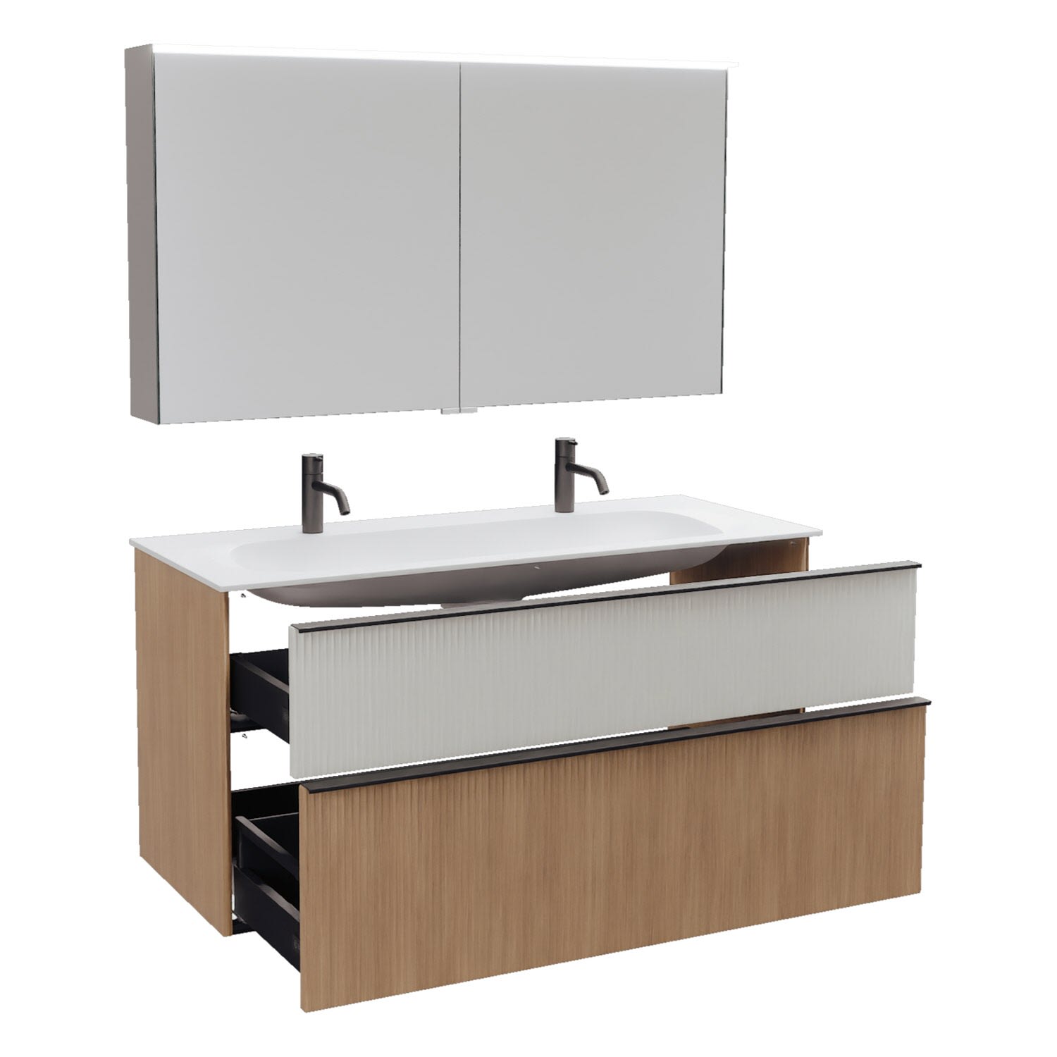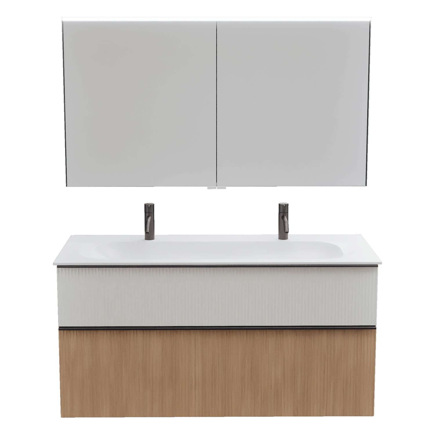 burgbad Fiumo 2.0 Badmöbelset 122 cm mit Waschtisch mit Unterschrank mit Griff G0200 und Spiegelschrank