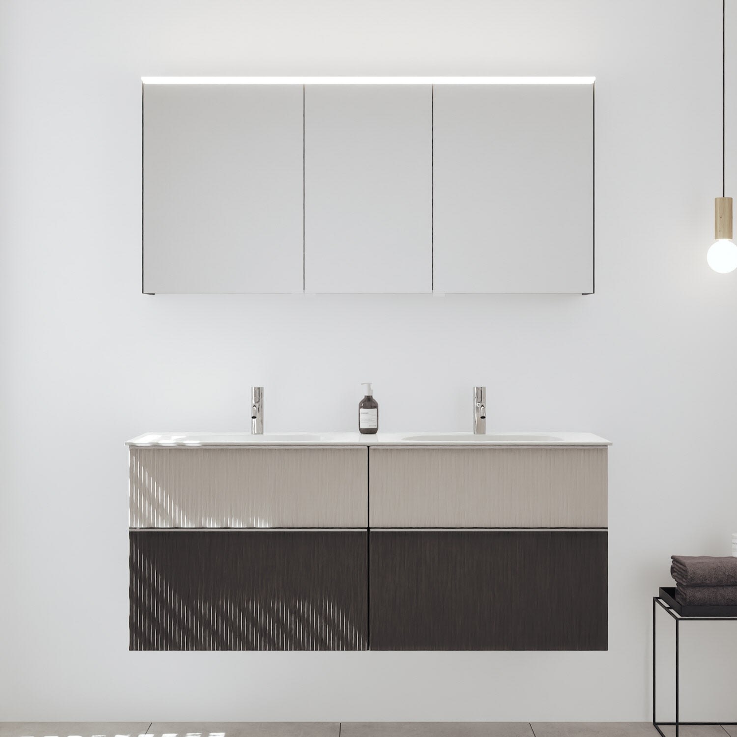 burgbad Fiumo 2.0 Badmöbelset 142 cm mit Waschtisch mit Unterschrank mit Griff G0146 und Spiegelschrank