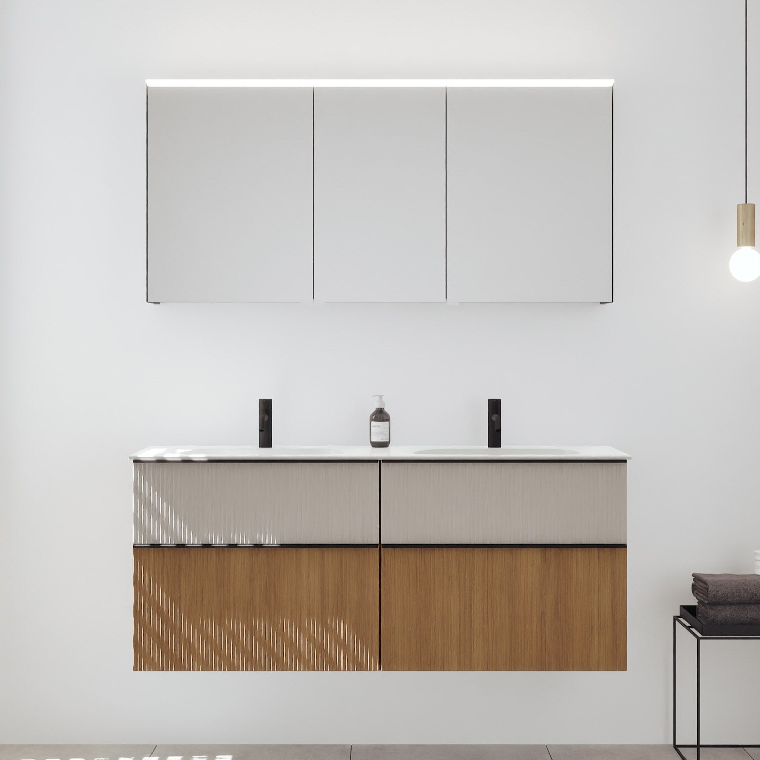 burgbad Fiumo 2.0 Badmöbelset 142 cm mit Waschtisch mit Unterschrank mit Griff G0200 und Spiegelschrank