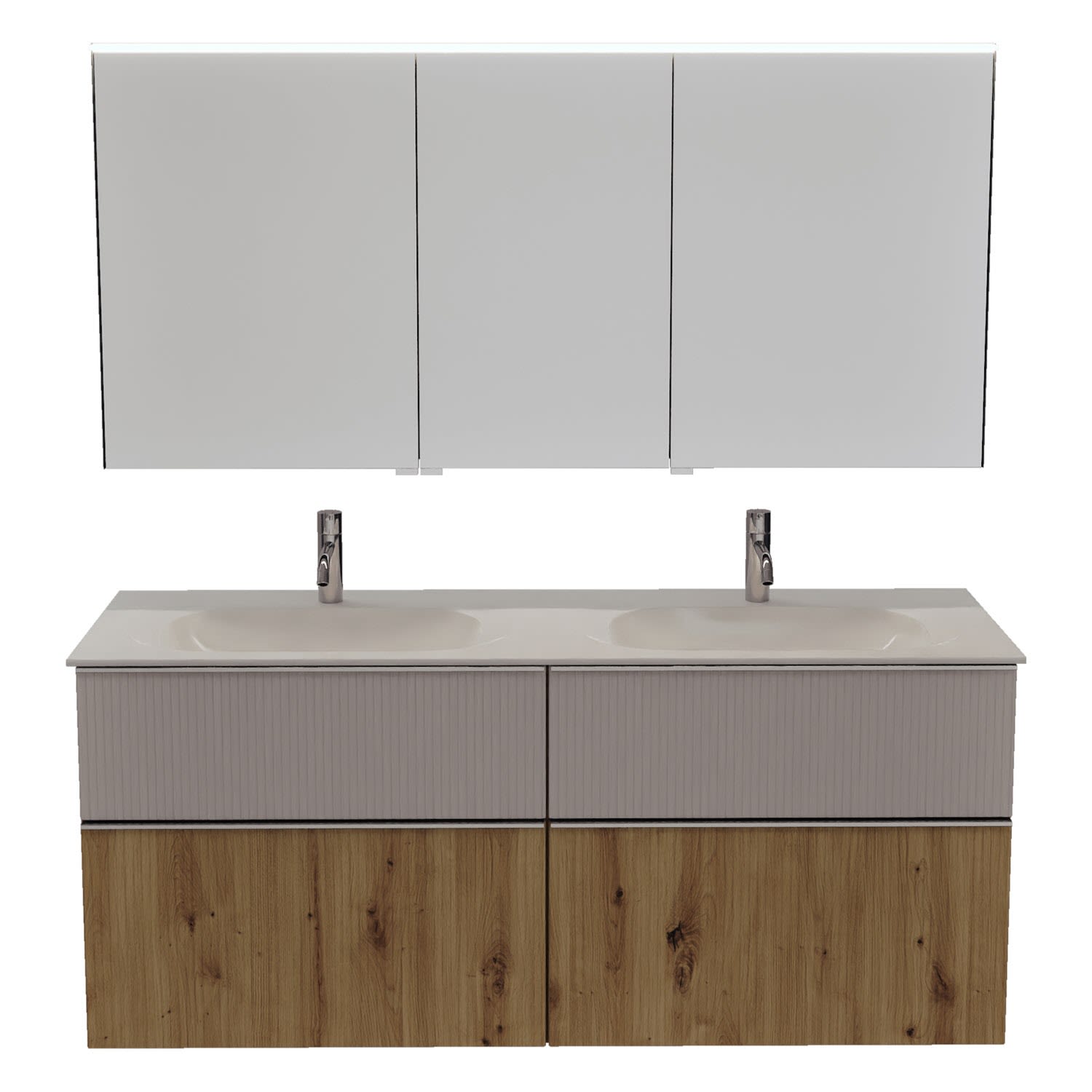 burgbad Fiumo 2.0 Badmöbelset 142 cm mit Waschtisch mit Unterschrank mit Griff G0146 und Spiegelschrank