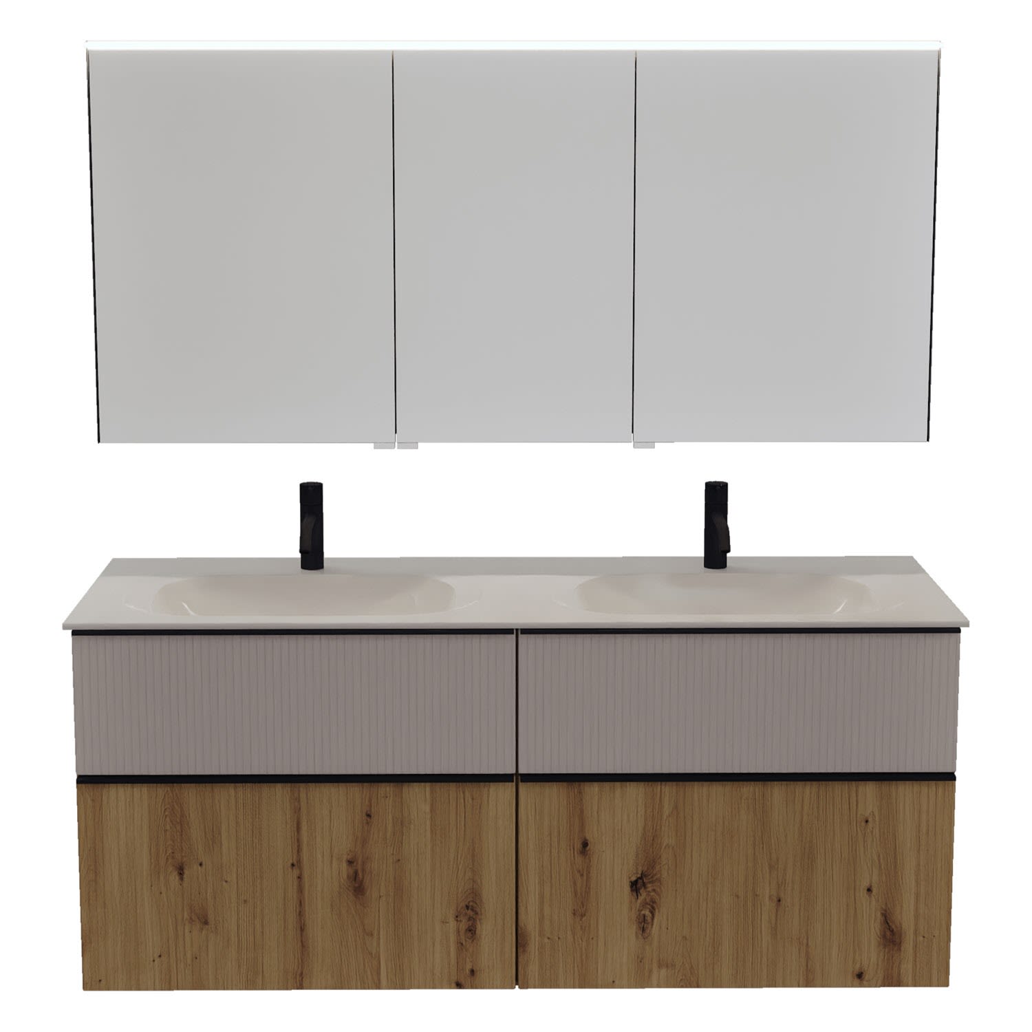 burgbad Fiumo 2.0 Badmöbelset 142 cm mit Waschtisch mit Unterschrank mit Griff G0200 und Spiegelschrank
