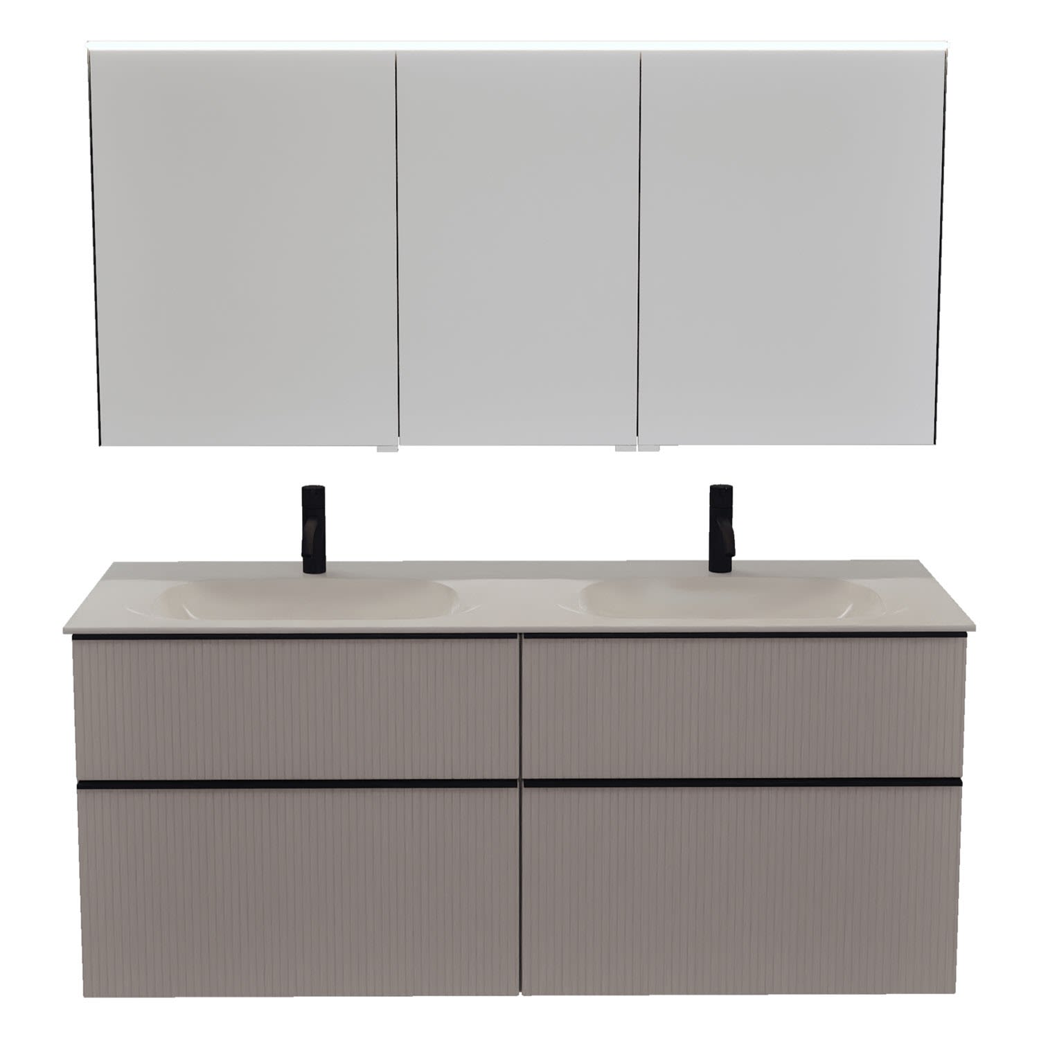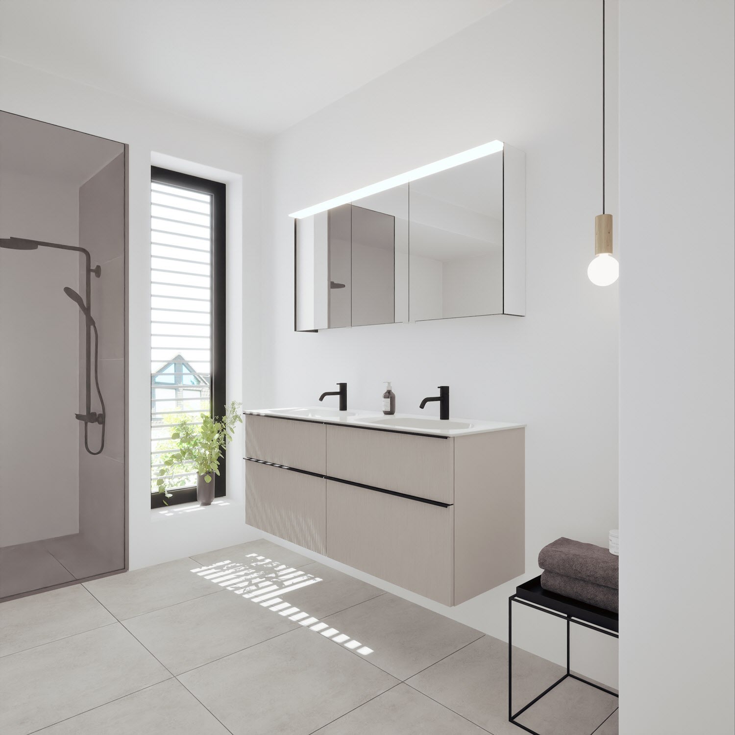 burgbad Fiumo 2.0 Badmöbelset 142 cm mit Waschtisch mit Unterschrank mit Griff G0200 und Spiegelschrank