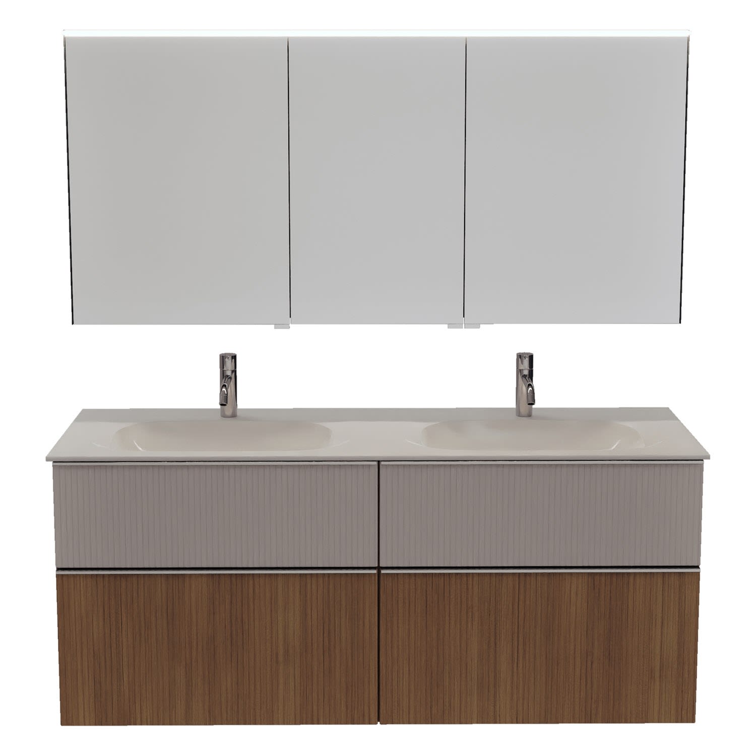 burgbad Fiumo 2.0 Badmöbelset 142 cm mit Waschtisch mit Unterschrank mit Griff G0146 und Spiegelschrank