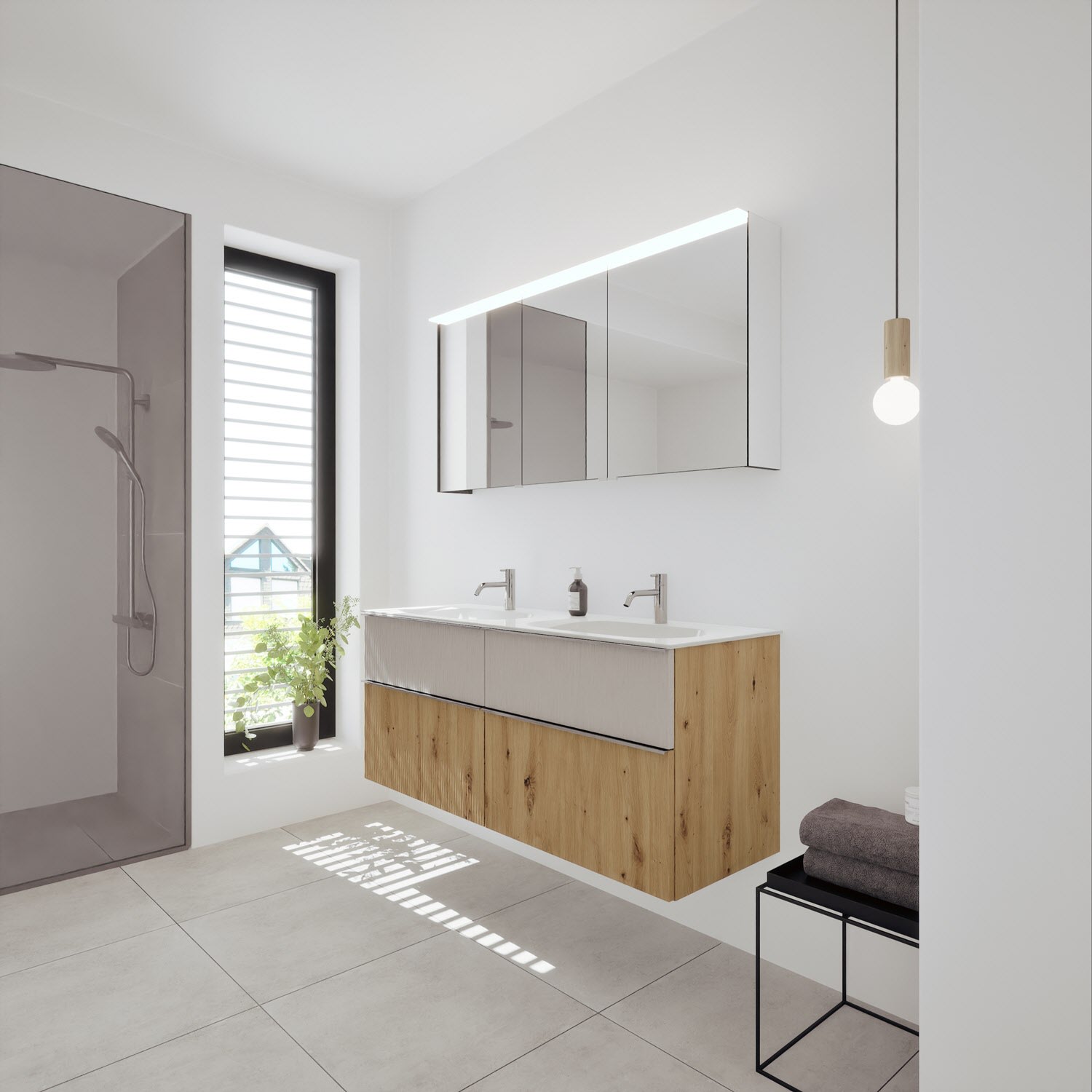 burgbad Fiumo 2.0 Badmöbelset 142 cm mit Waschtisch mit Unterschrank mit Griff G0146 und Spiegelschrank