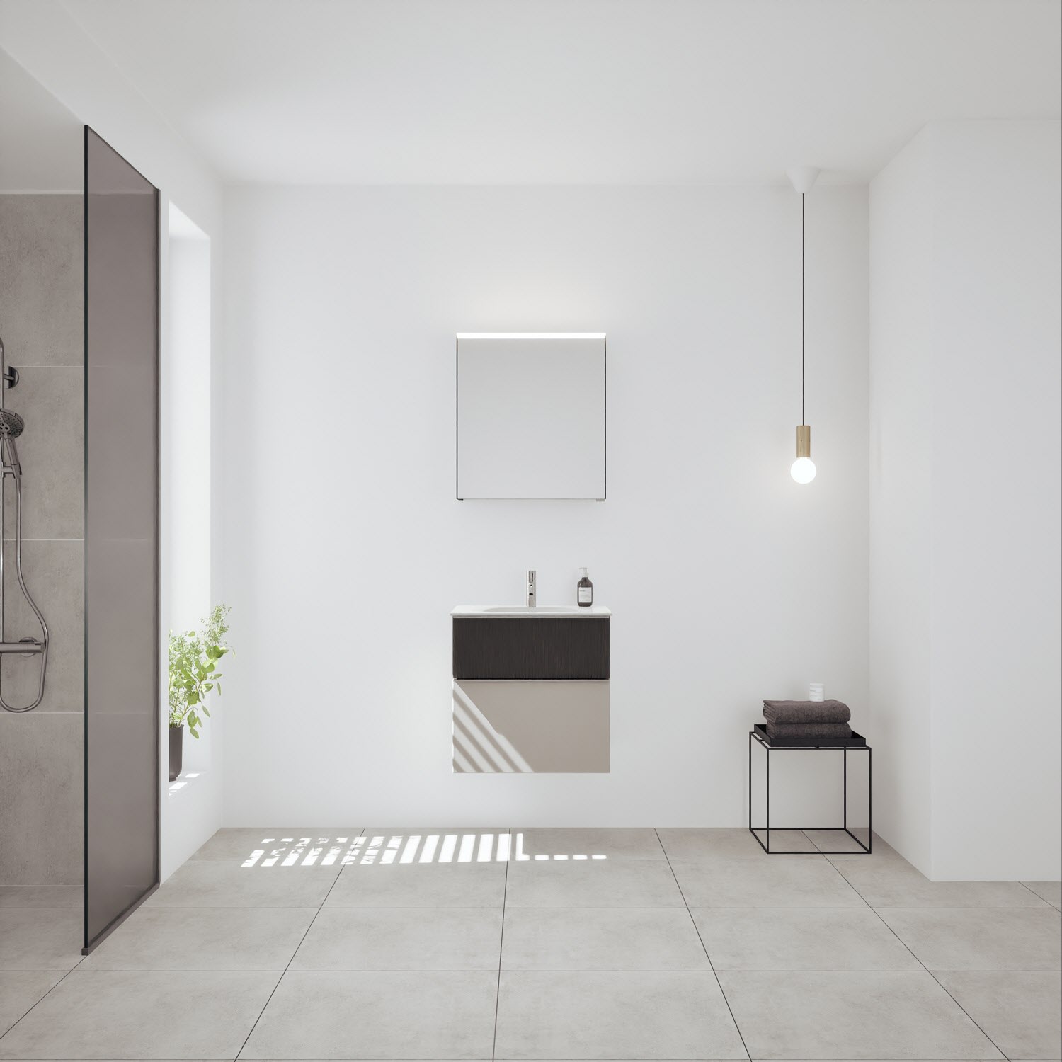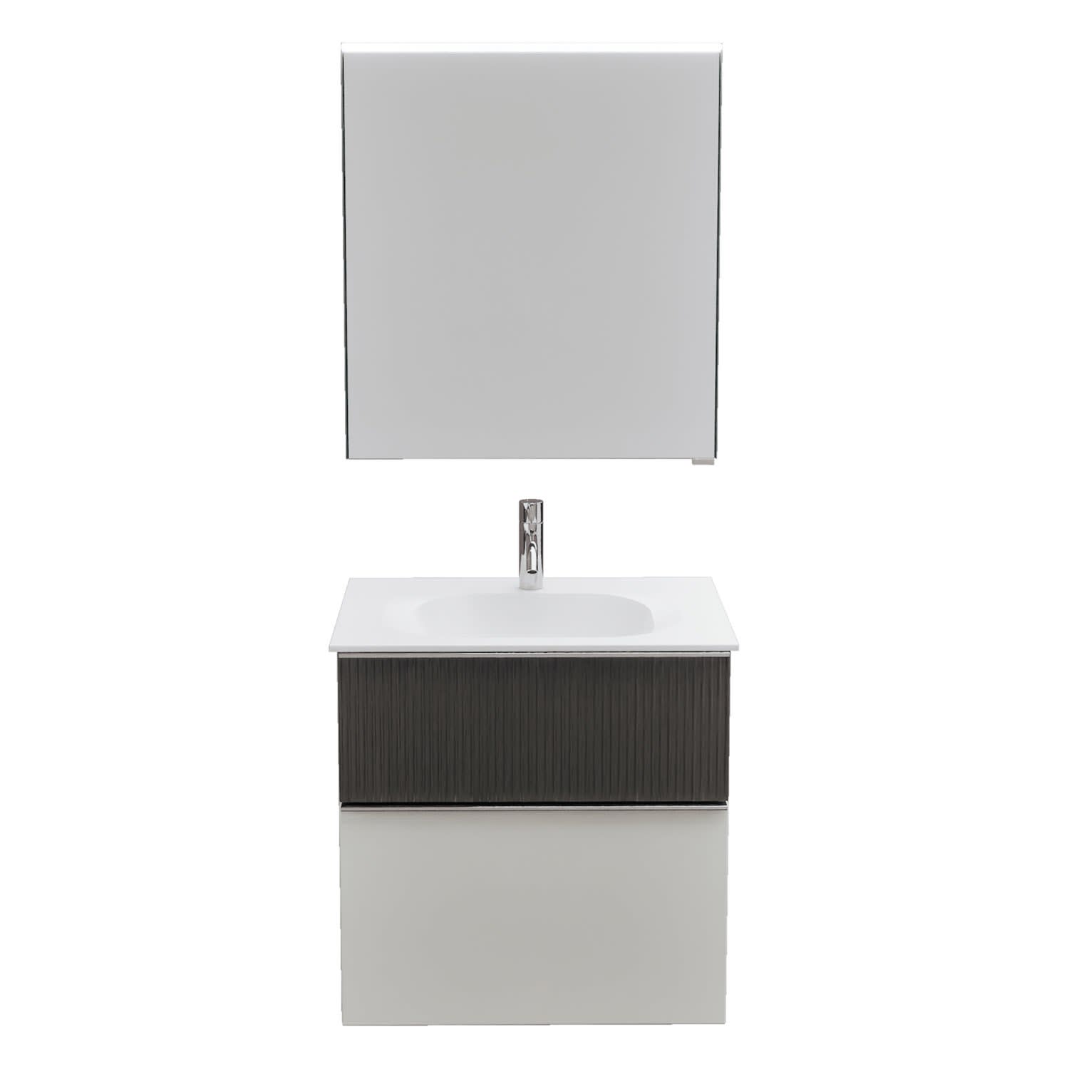 burgbad Fiumo 2.0 Badmöbelset 62 cm mit Waschtisch mit Unterschrank mit Griff G0146 und Spiegelschrank