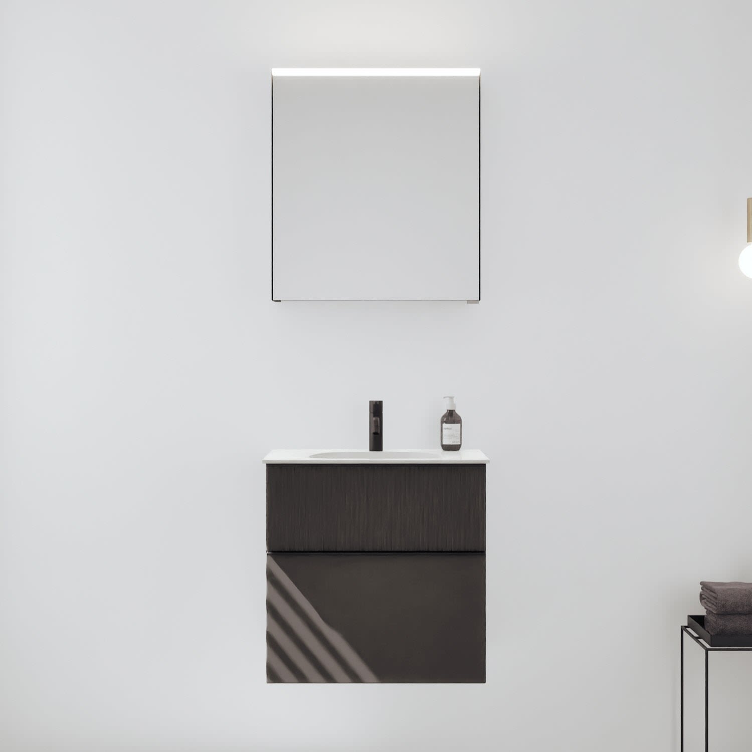 burgbad Fiumo 2.0 Badmöbelset 62 cm mit Waschtisch mit Unterschrank mit Griff G0200 und Spiegelschrank