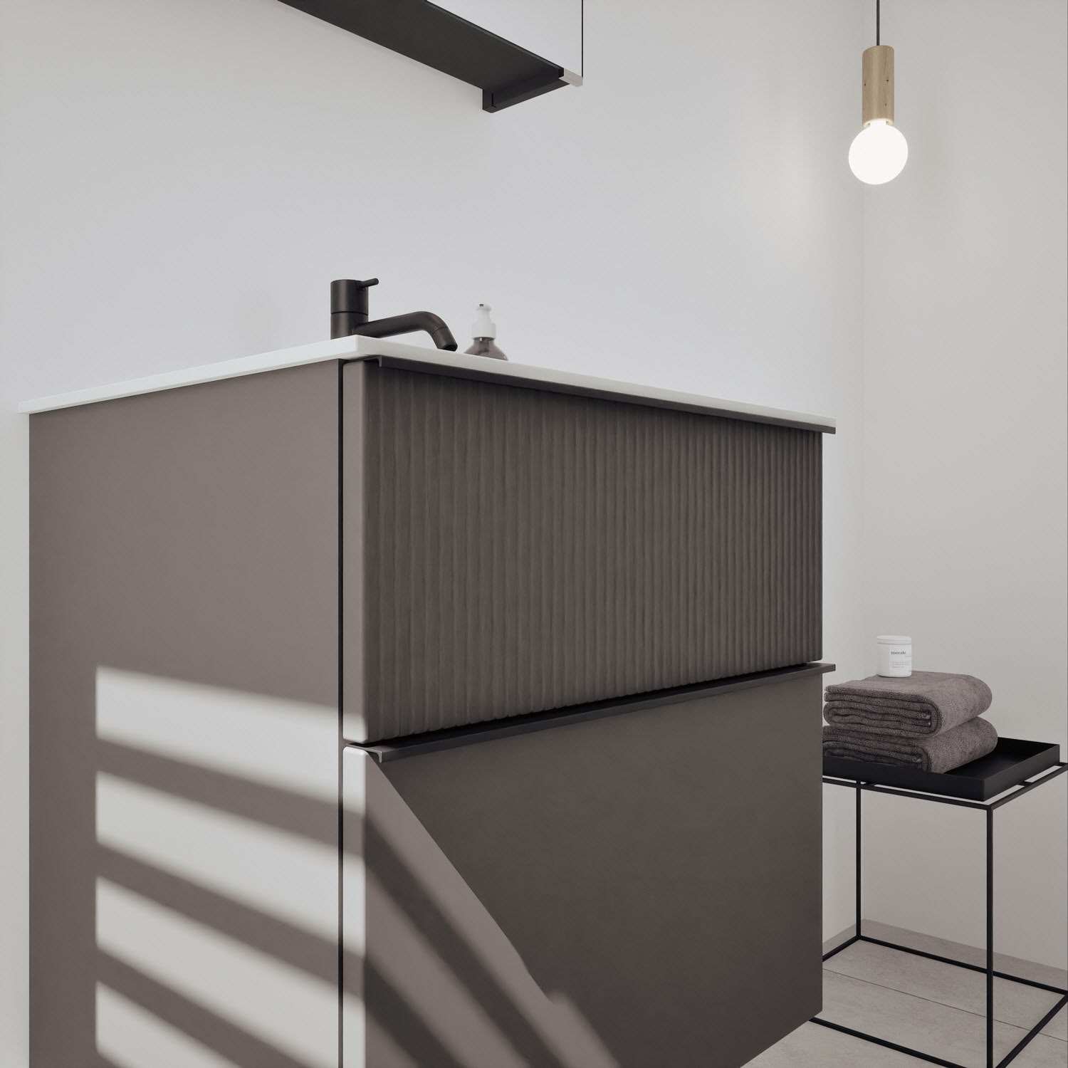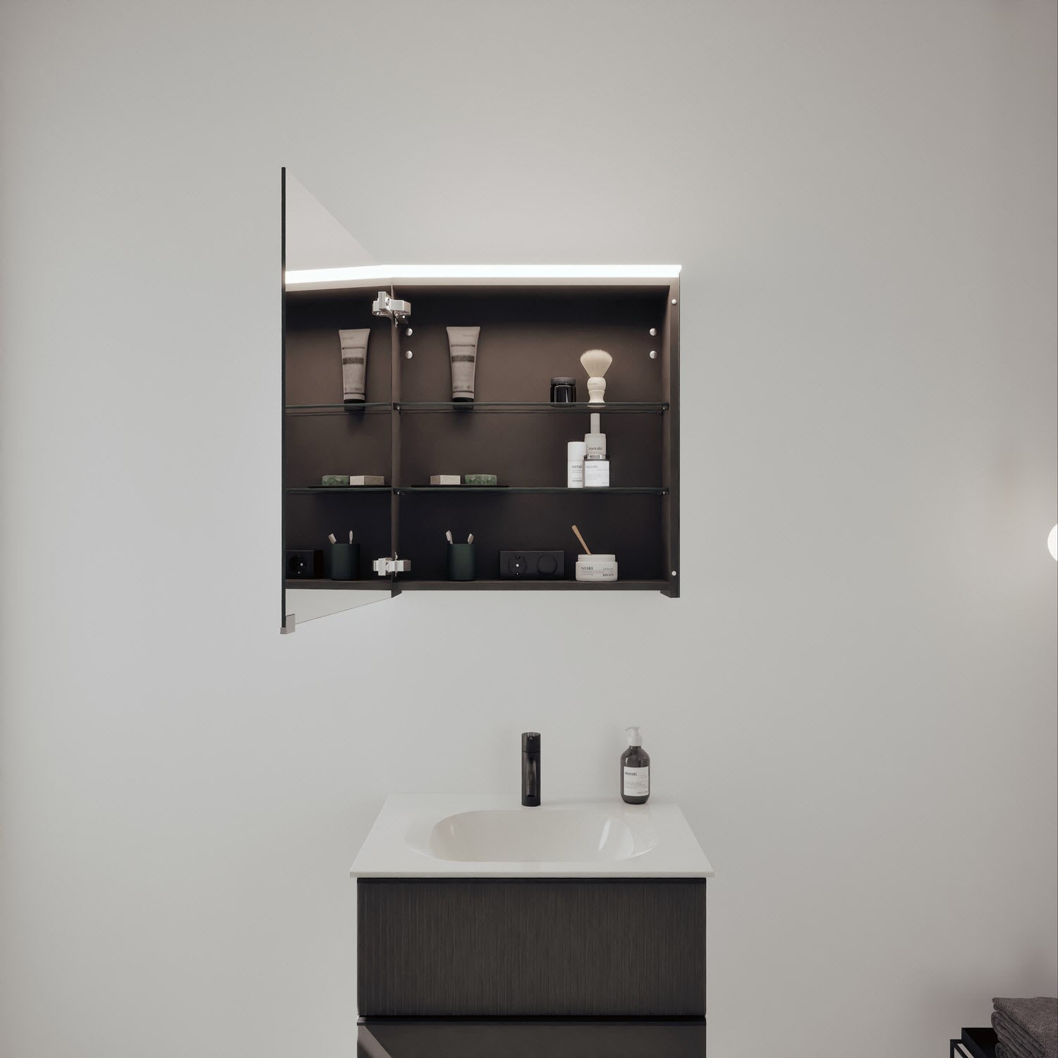 - Spiegelschrank, Waschtischunterschrank, Waschtisch, burgbad cleanFlow, Befestigung außer Stockschrauben