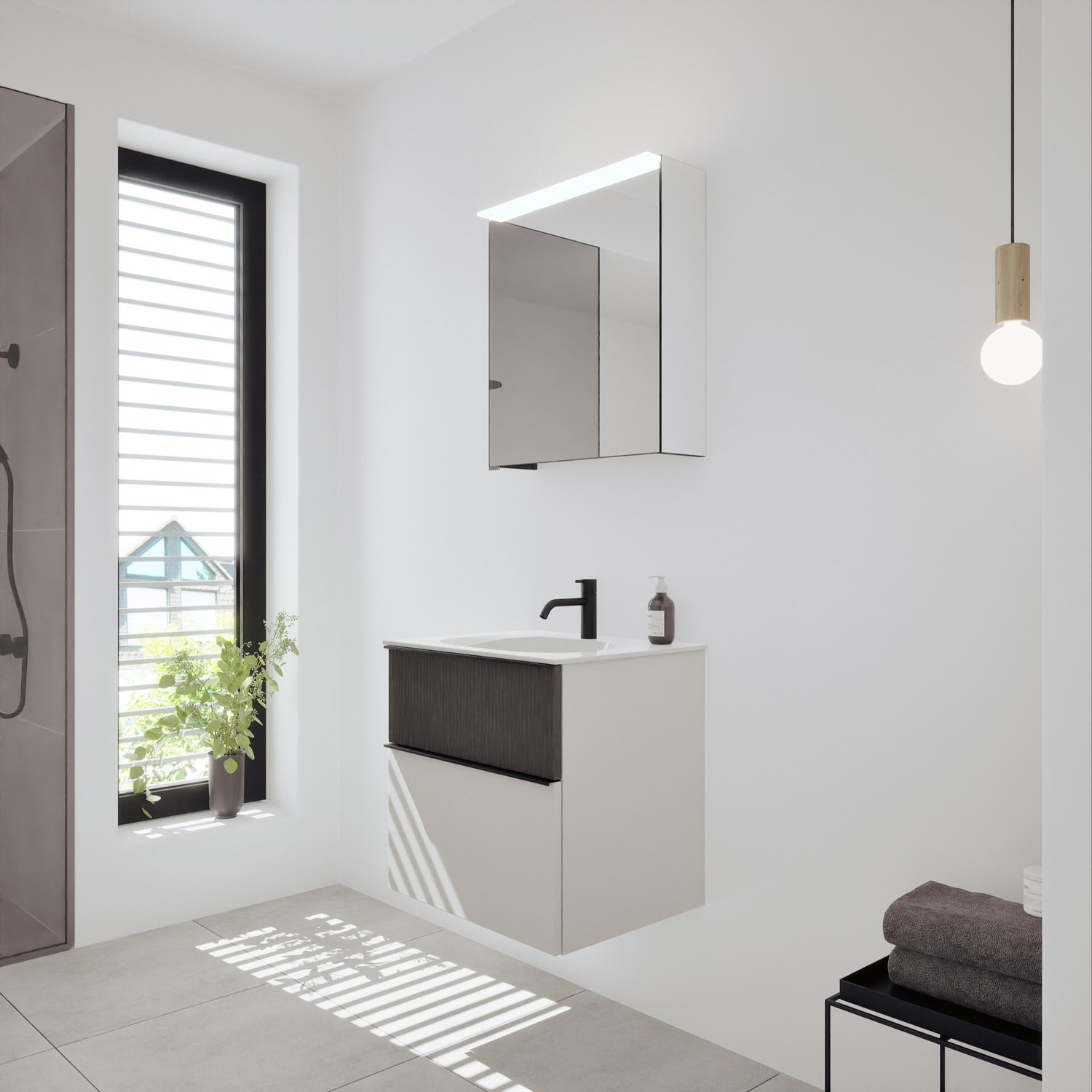 burgbad Fiumo 2.0 Badmöbelset 62 cm mit Waschtisch mit Unterschrank mit Griff G0200 und Spiegelschrank