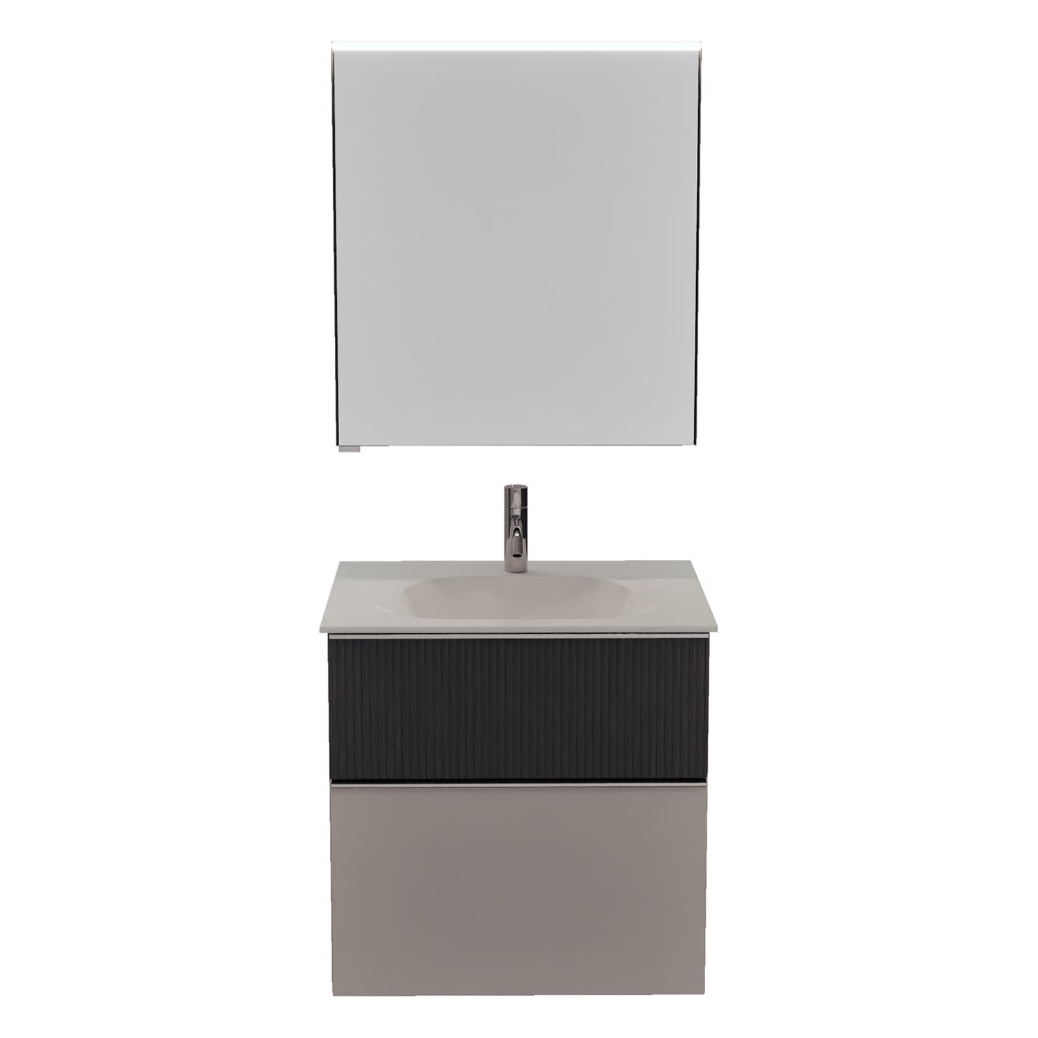burgbad Fiumo 2.0 Badmöbelset 62 cm mit Waschtisch mit Unterschrank mit Griff G0146 und Spiegelschrank
