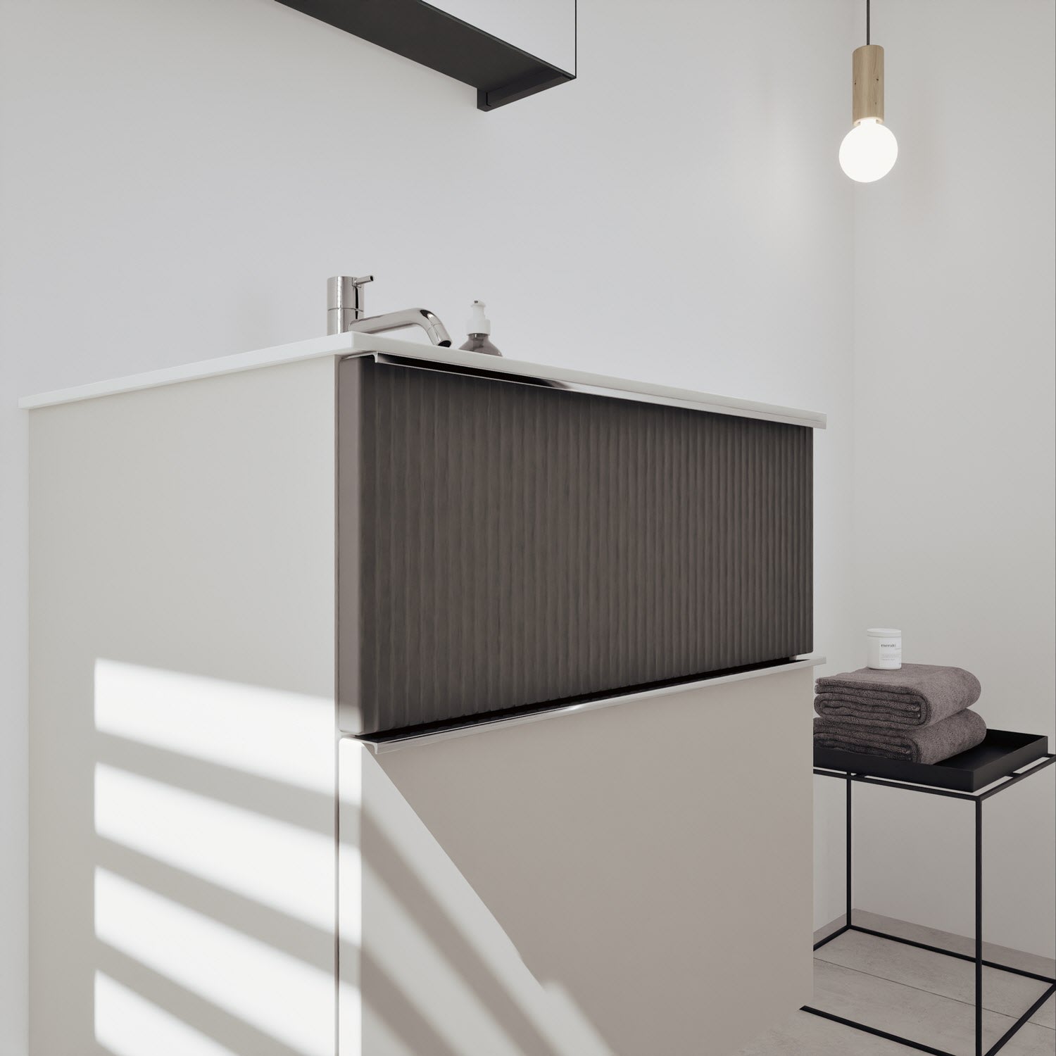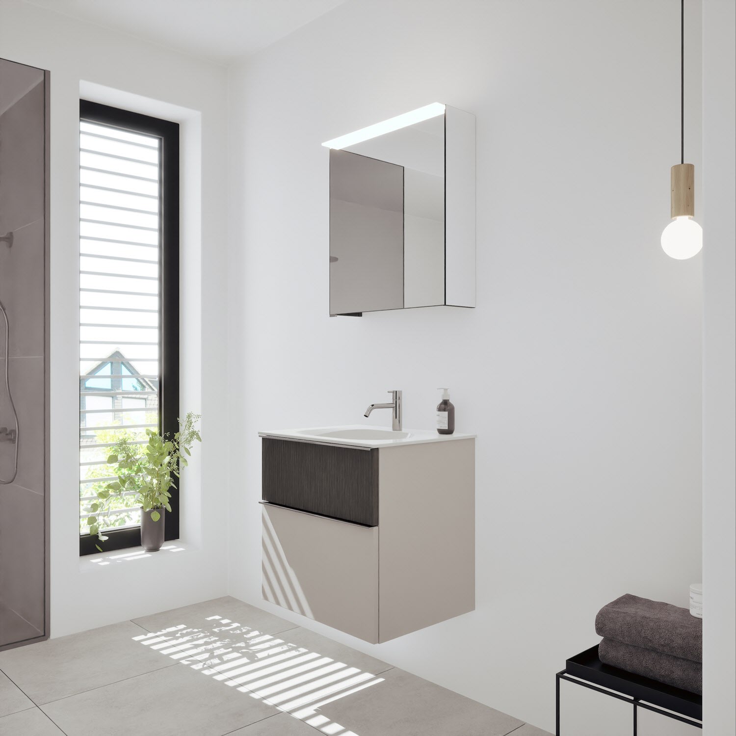- Spiegelschrank, Waschtischunterschrank, Waschtisch, burgbad cleanFlow, Befestigung außer Stockschrauben