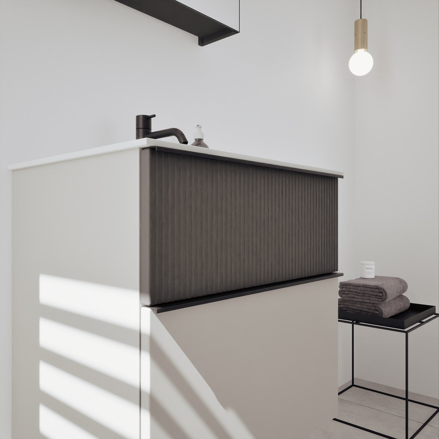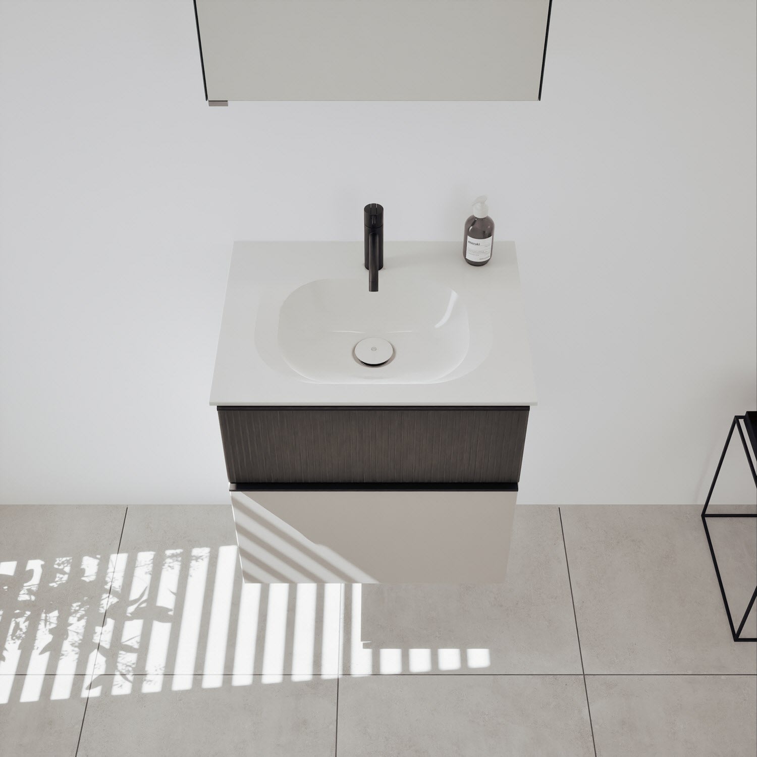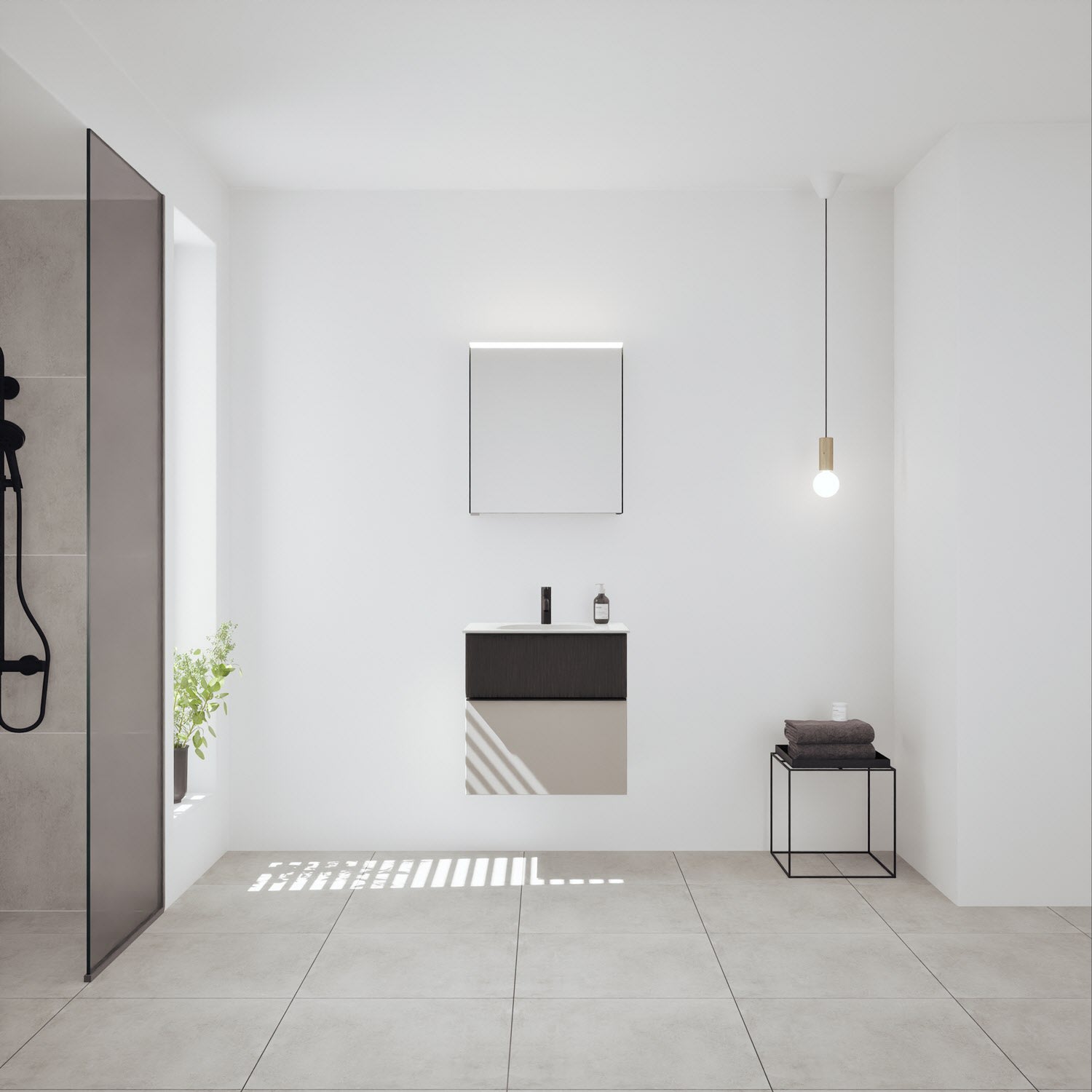 - Spiegelschrank, Waschtischunterschrank, Waschtisch, burgbad cleanFlow, Befestigung außer Stockschrauben