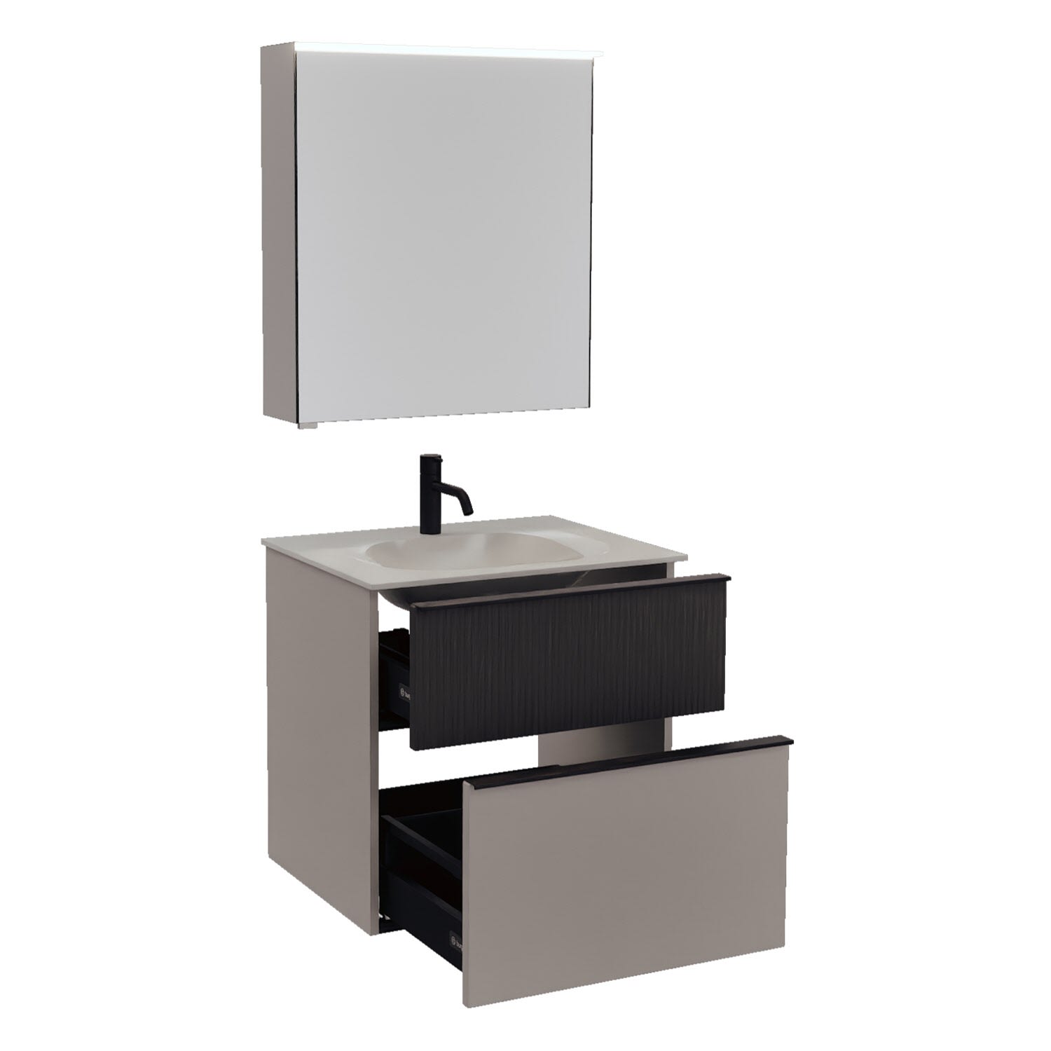 burgbad Fiumo 2.0 Badmöbelset 62 cm mit Waschtisch mit Unterschrank mit Griff G0200 und Spiegelschrank