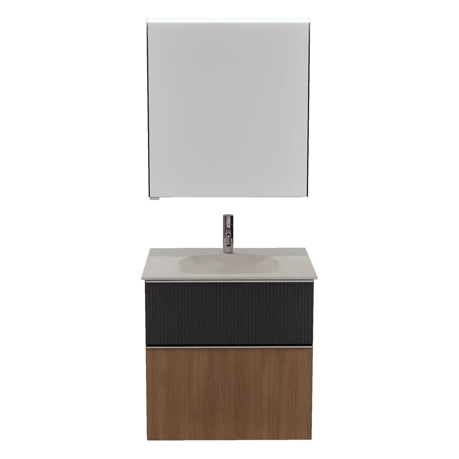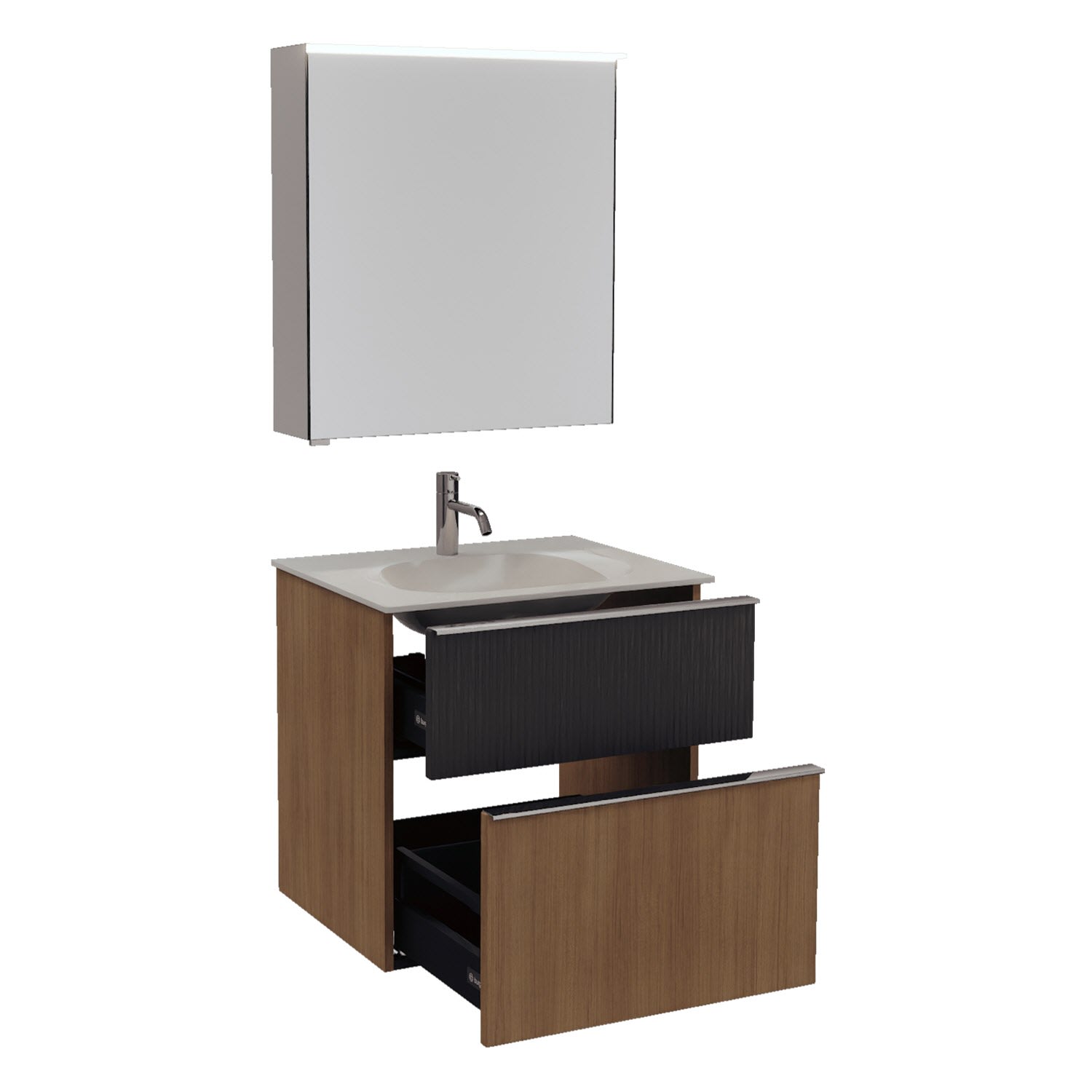burgbad Fiumo 2.0 Badmöbelset 62 cm mit Waschtisch mit Unterschrank mit Griff G0146 und Spiegelschrank