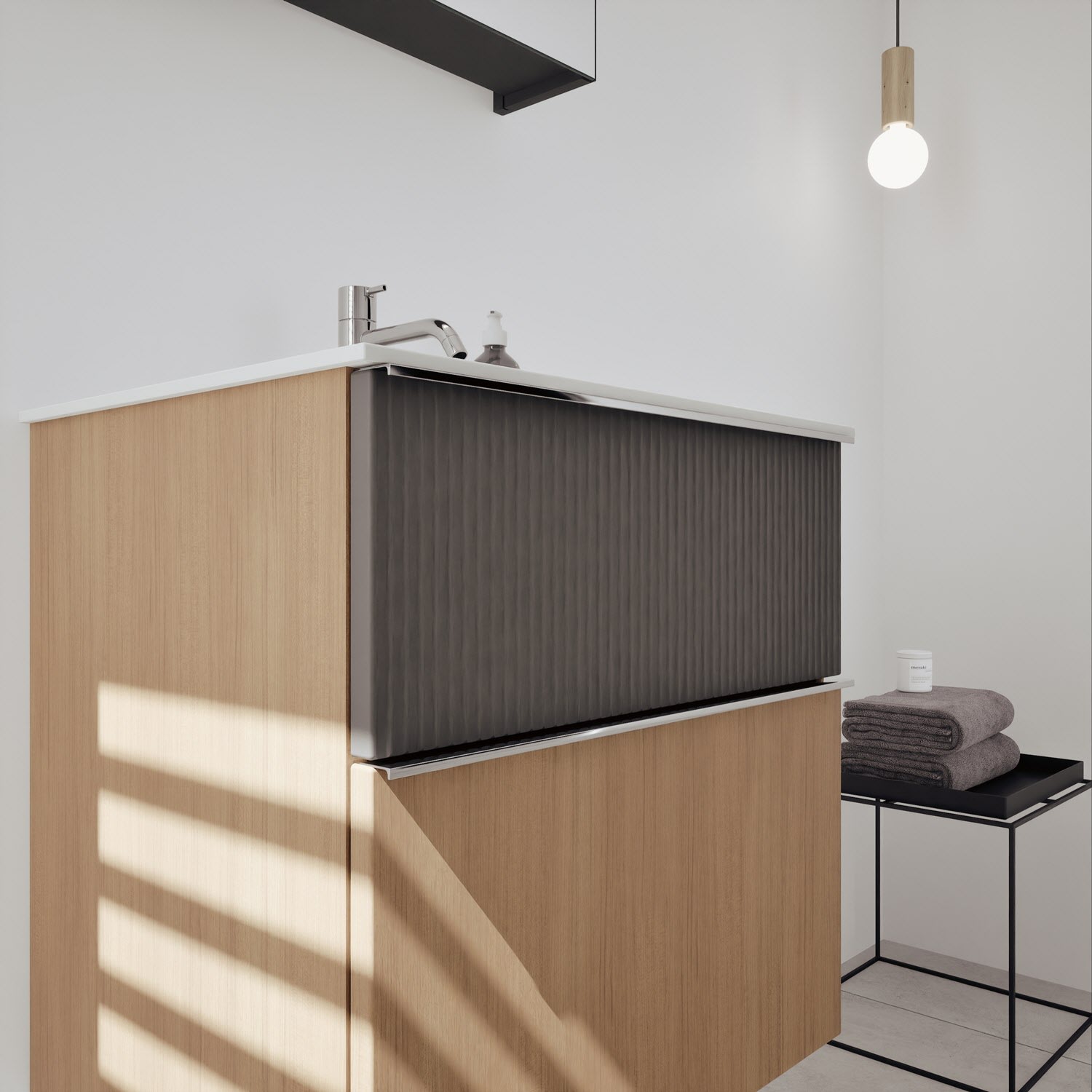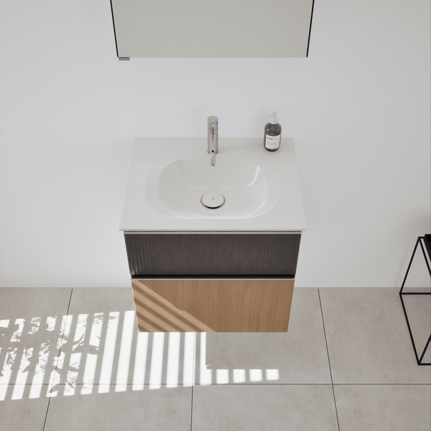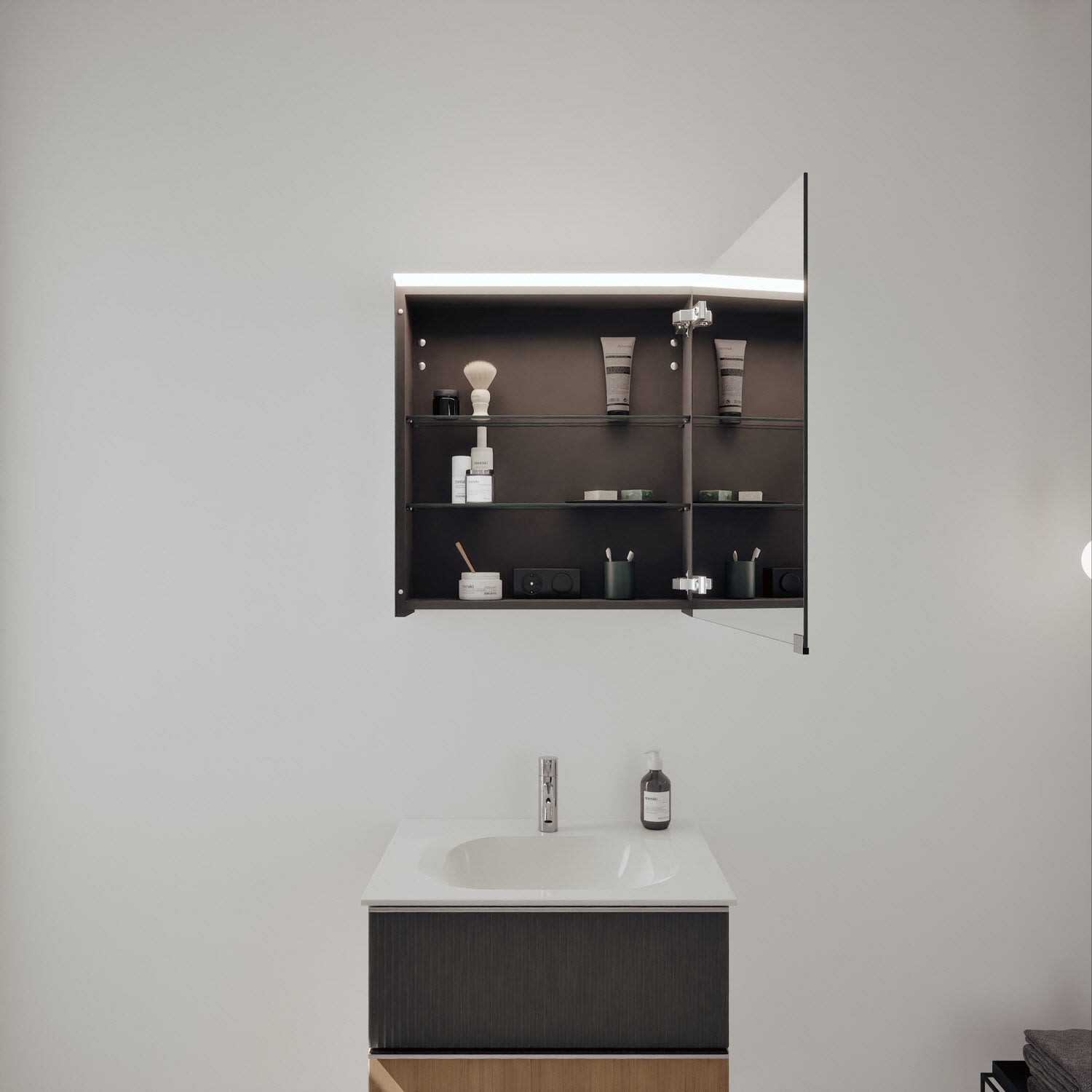 - Spiegelschrank, Waschtischunterschrank, Waschtisch, burgbad cleanFlow, Befestigung außer Stockschrauben
