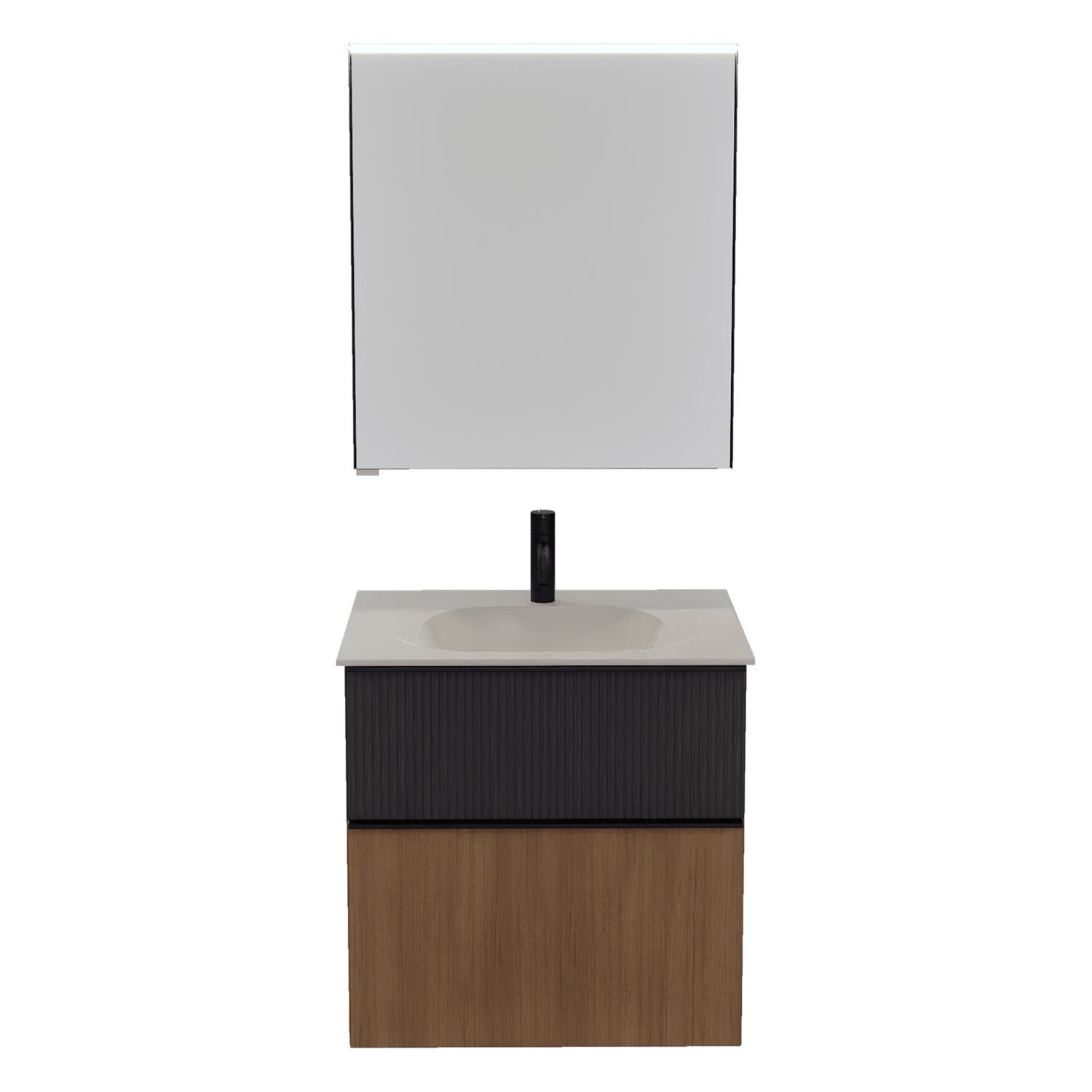burgbad Fiumo 2.0 Badmöbelset 62 cm mit Waschtisch mit Unterschrank mit Griff G0200 und Spiegelschrank