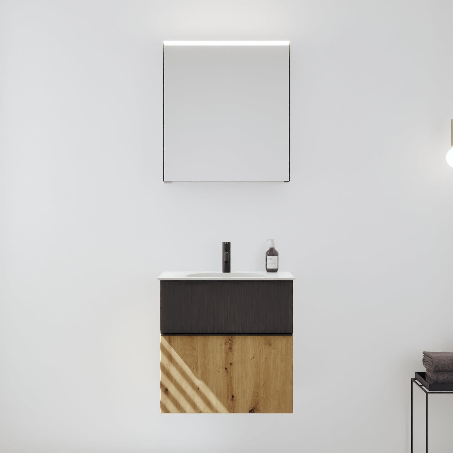 burgbad Fiumo 2.0 Badmöbelset 62 cm mit Waschtisch mit Unterschrank mit Griff G0200 und Spiegelschrank