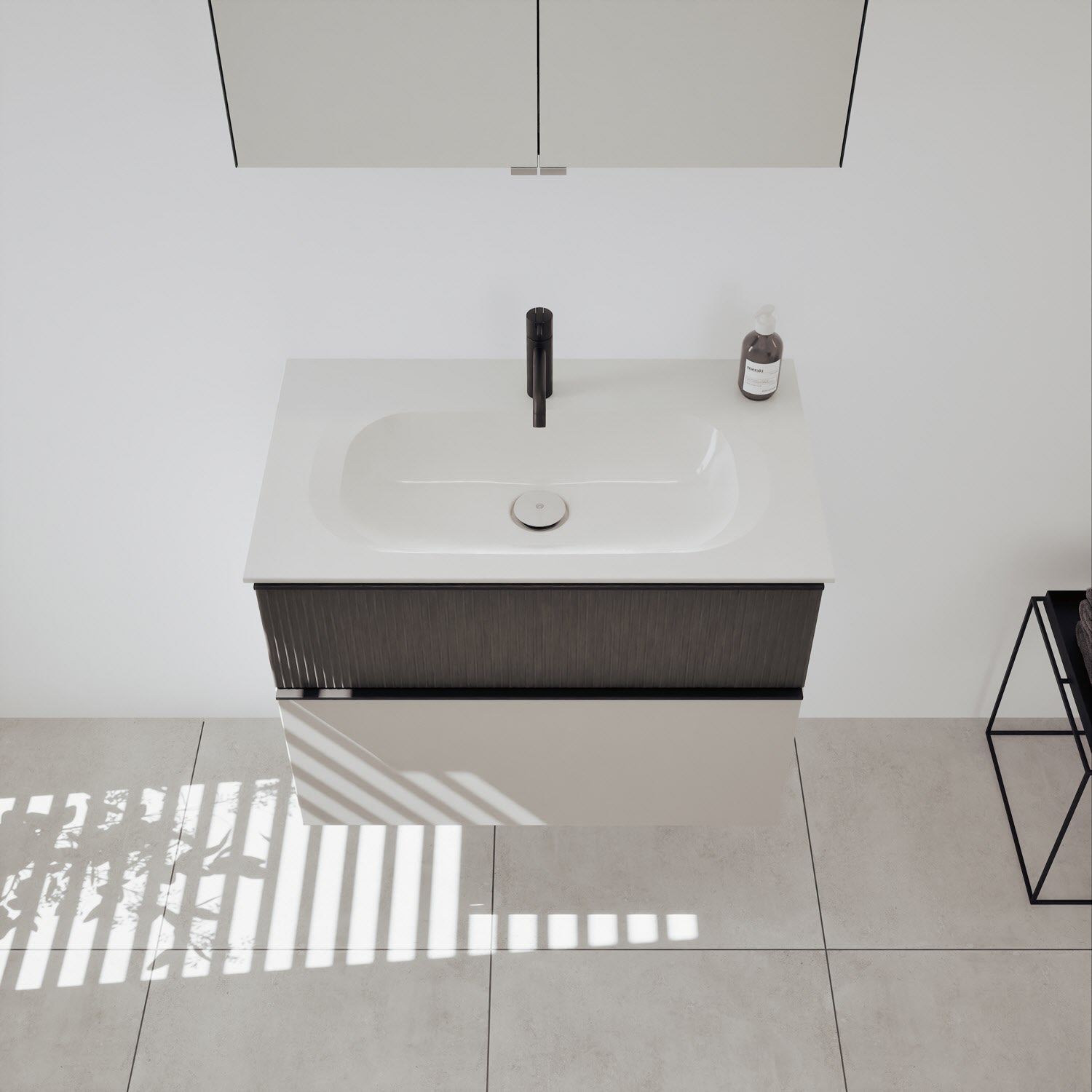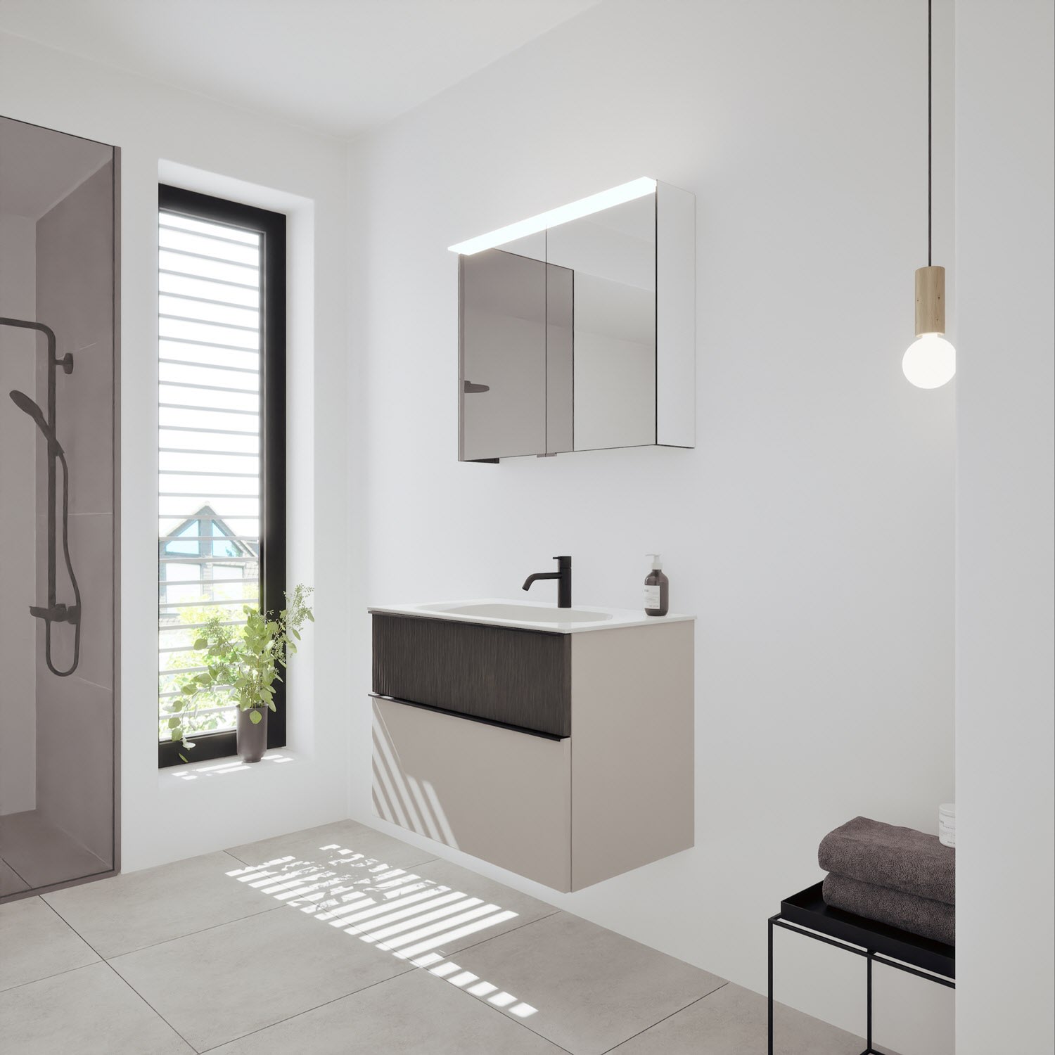 burgbad Fiumo 2.0 Badmöbelset 82 cm mit Waschtisch mit Unterschrank mit Griff G0200 und Spiegelschrank