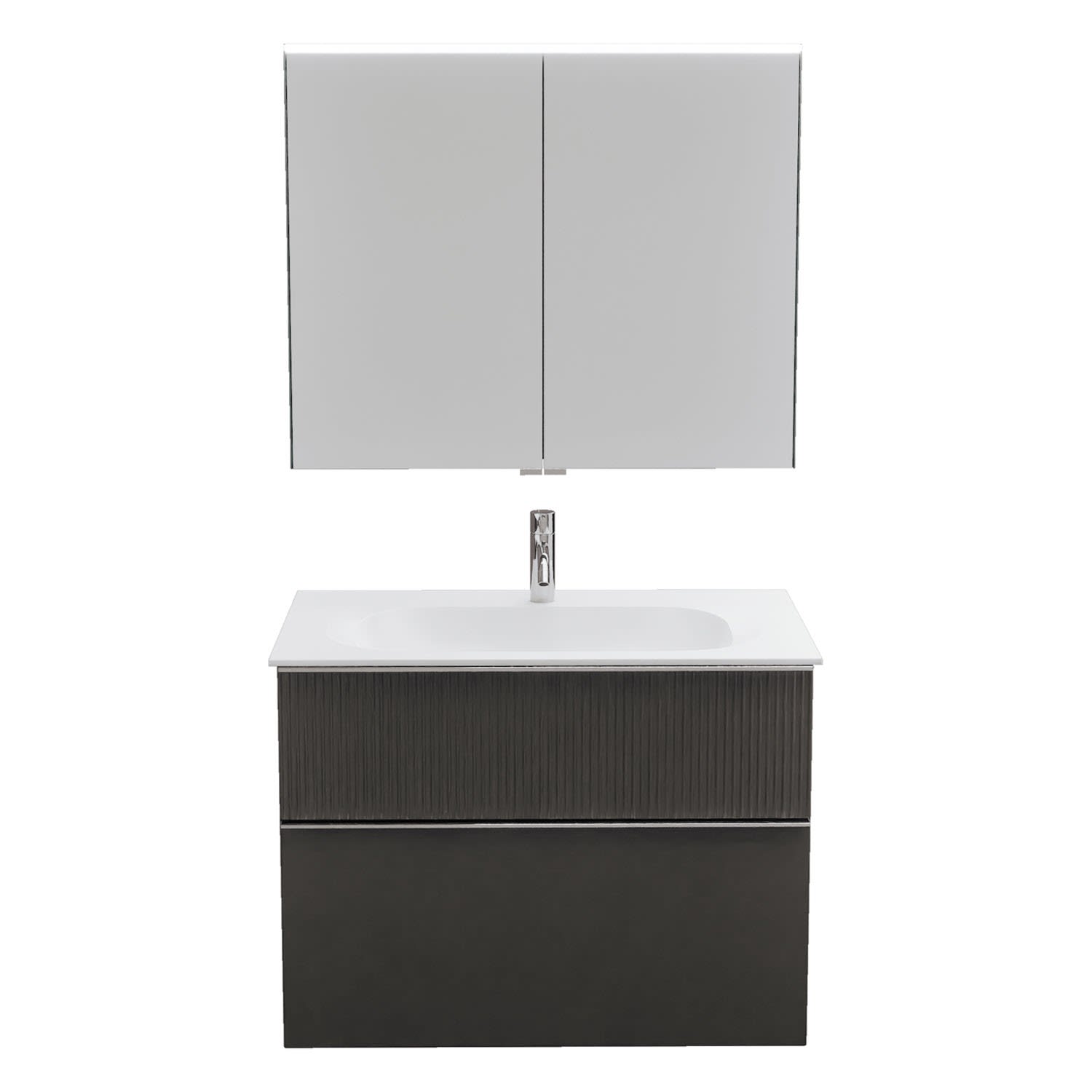 burgbad Fiumo 2.0 Badmöbelset 82 cm mit Waschtisch mit Unterschrank mit Griff G0146 und Spiegelschrank