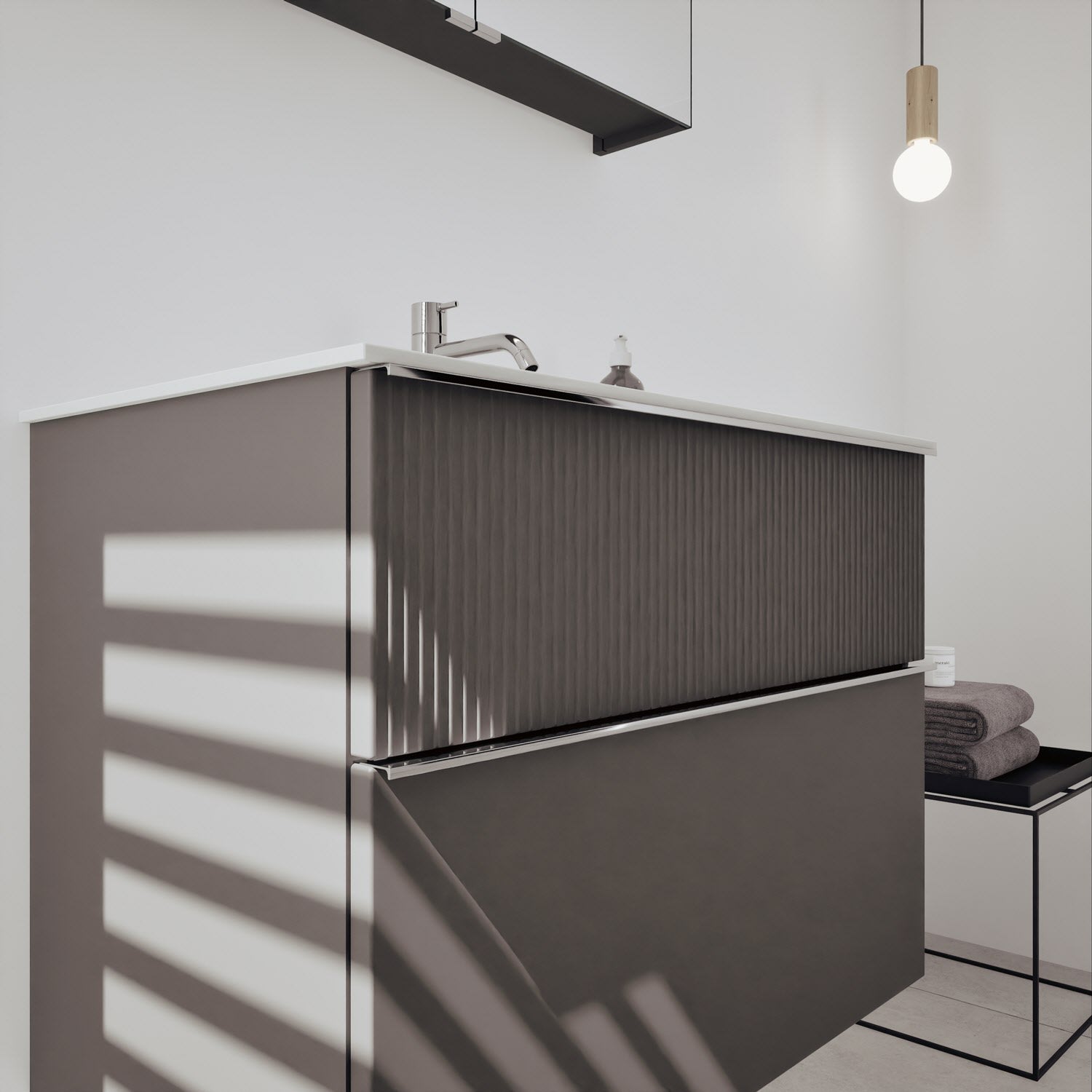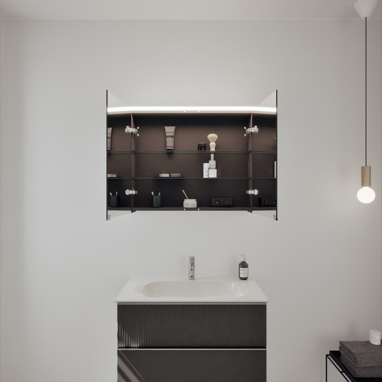 - Spiegelschrank, Waschtischunterschrank, Waschtisch, burgbad cleanFlow, Befestigung außer Stockschrauben