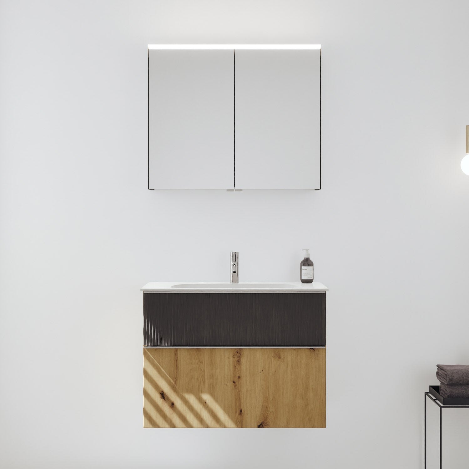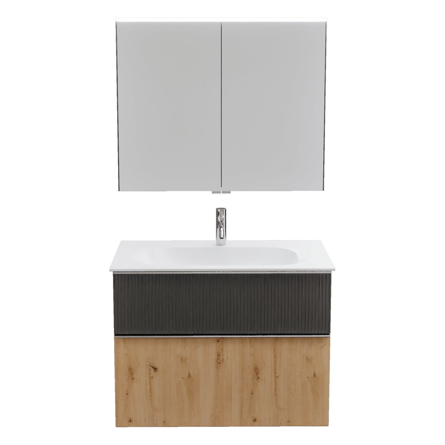 burgbad Fiumo 2.0 Badmöbelset 82 cm mit Waschtisch mit Unterschrank mit Griff G0146 und Spiegelschrank