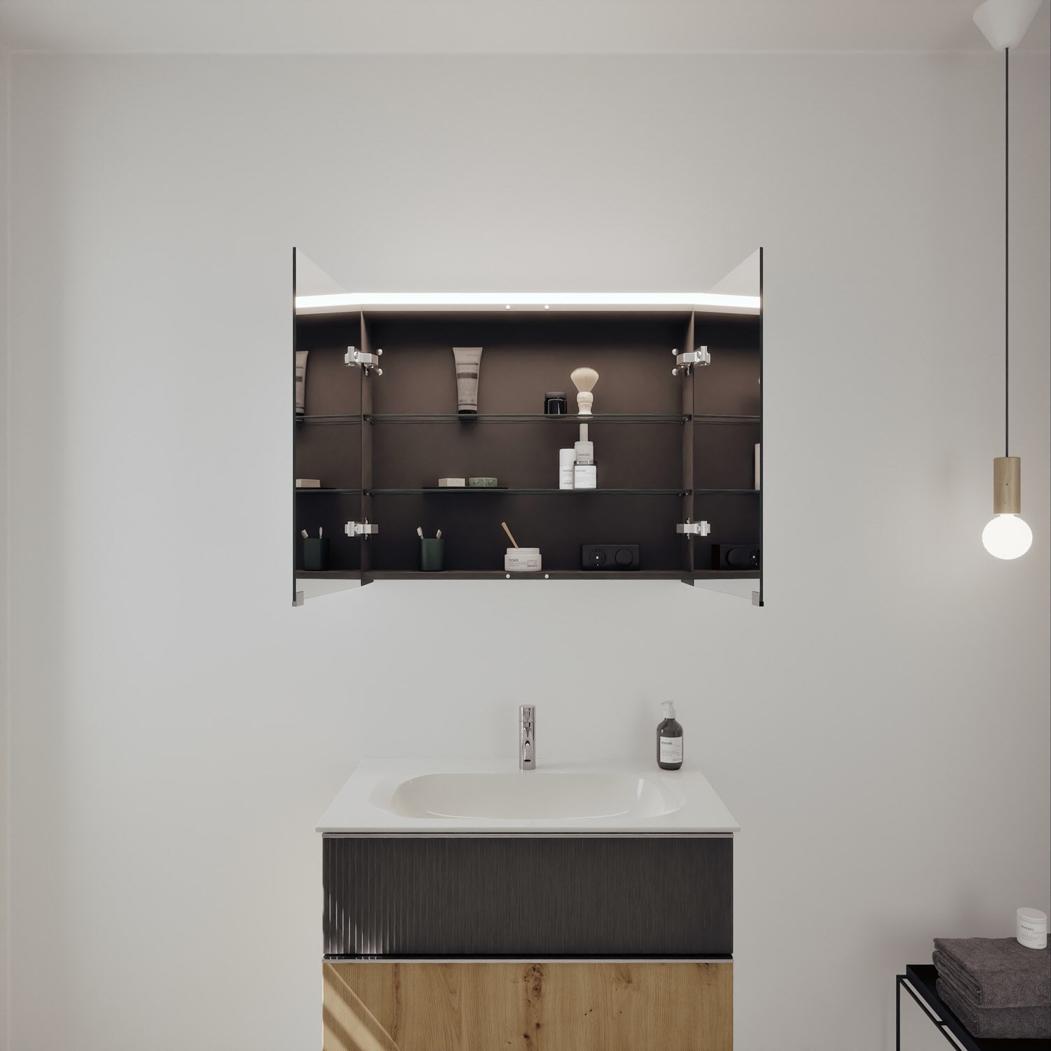 - Spiegelschrank, Waschtischunterschrank, Waschtisch, burgbad cleanFlow, Befestigung außer Stockschrauben