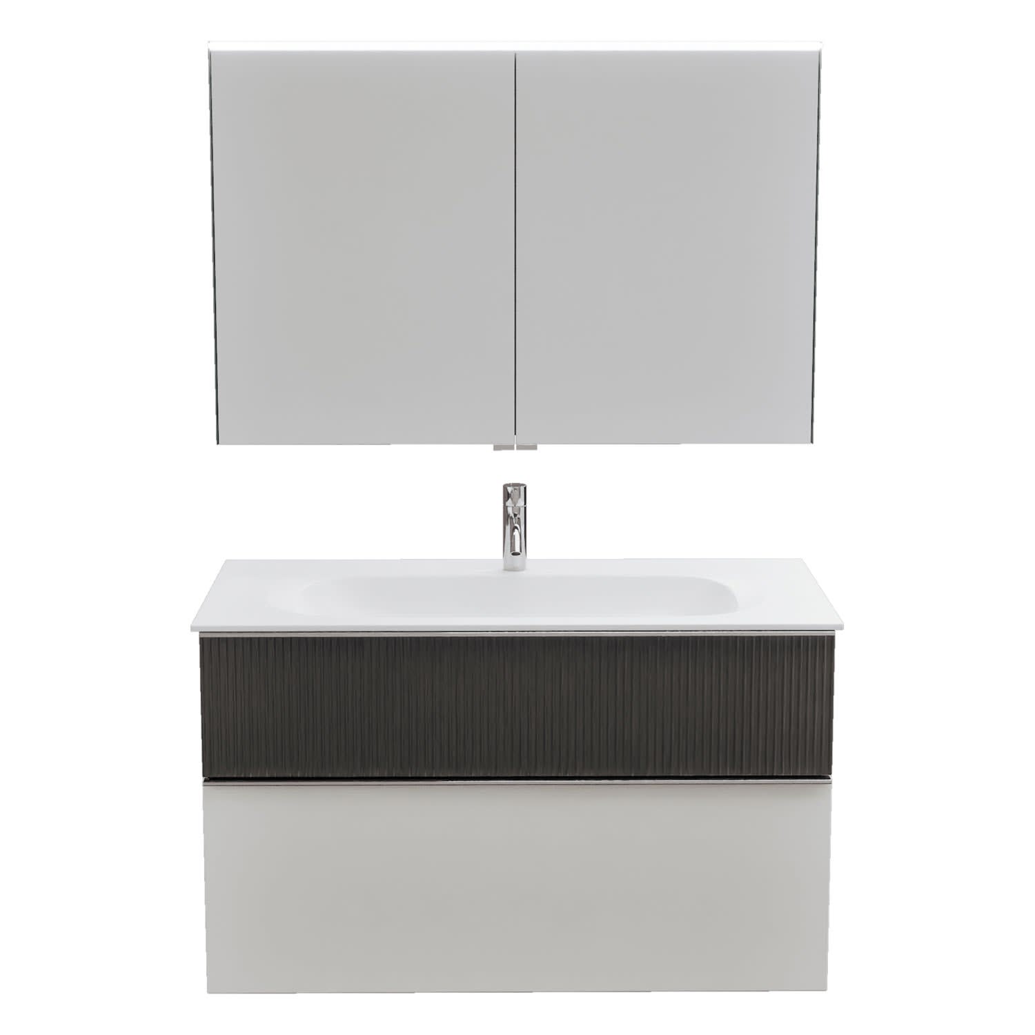 burgbad Fiumo 2.0 Badmöbelset 102 cm mit Waschtisch mit Unterschrank mit Griff G0146 und Spiegelschrank