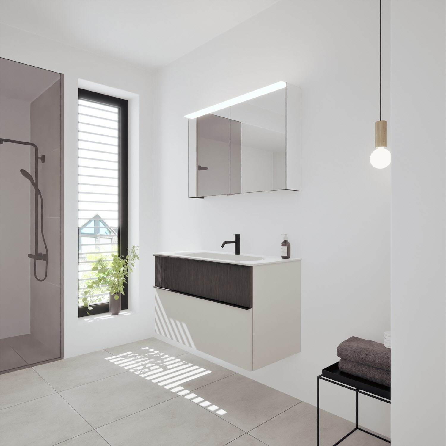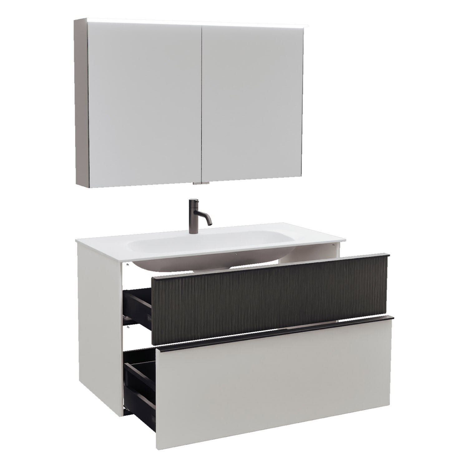 burgbad Fiumo 2.0 Badmöbelset 102 cm mit Waschtisch mit Unterschrank mit Griff G0200 und Spiegelschrank