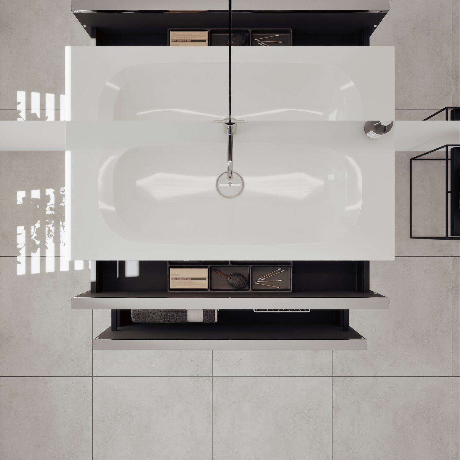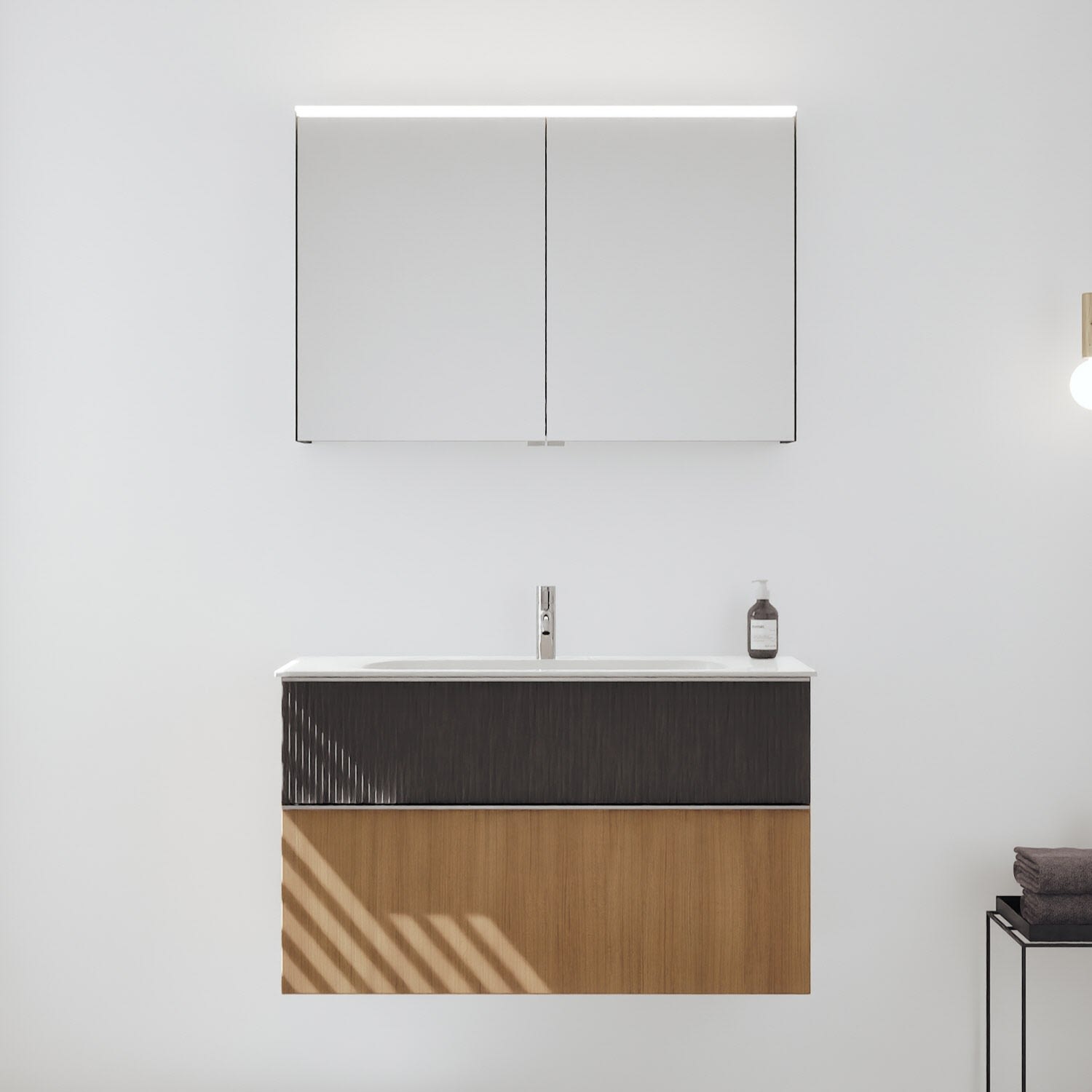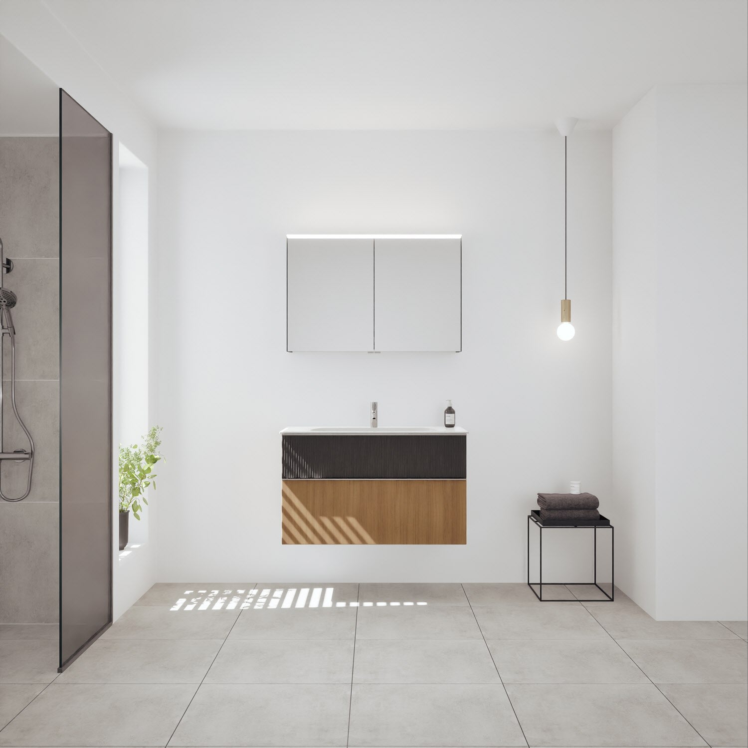 - Spiegelschrank, Waschtischunterschrank, Waschtisch, burgbad cleanFlow, Befestigung außer Stockschrauben
