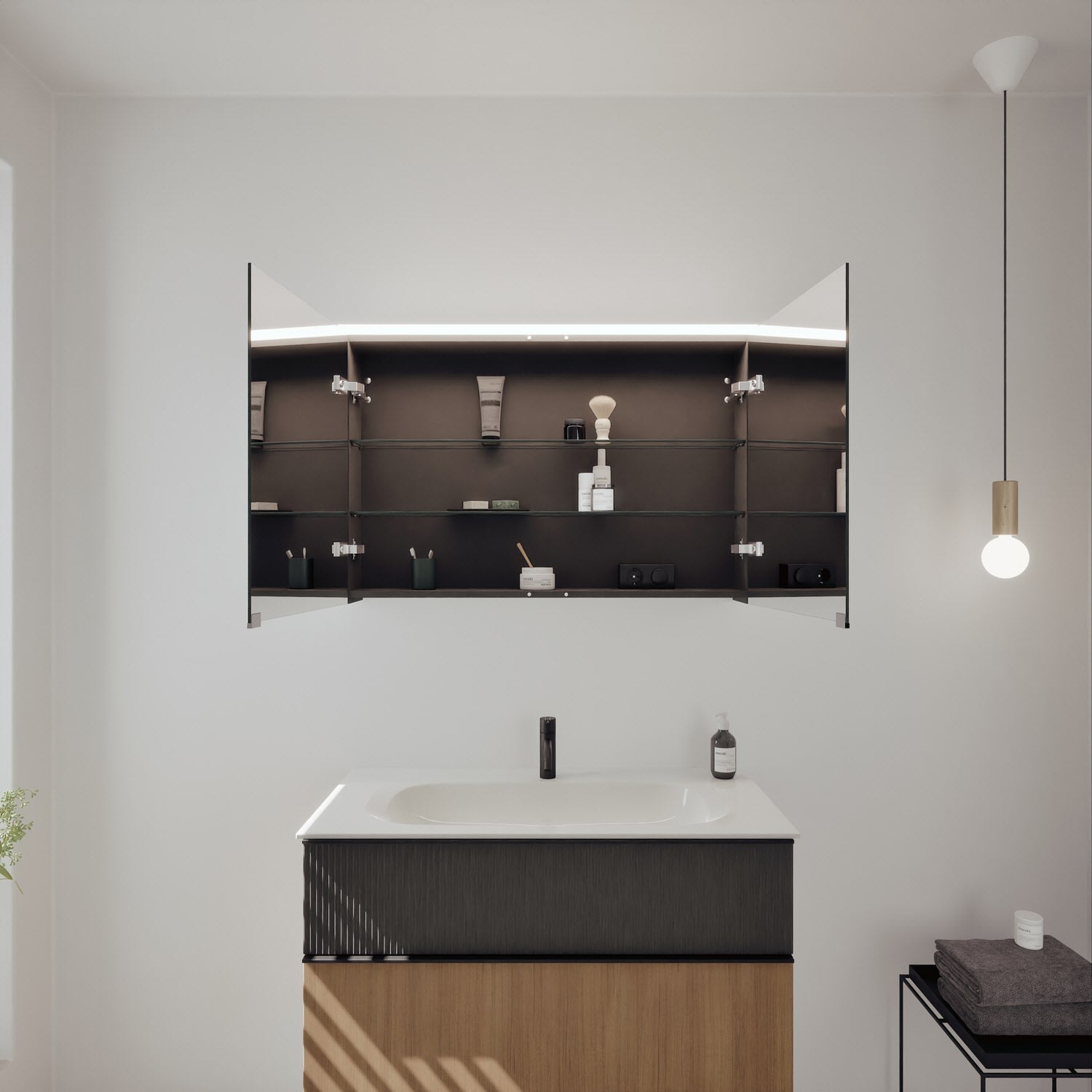 - Spiegelschrank, Waschtischunterschrank, Waschtisch, burgbad cleanFlow, Befestigung außer Stockschrauben