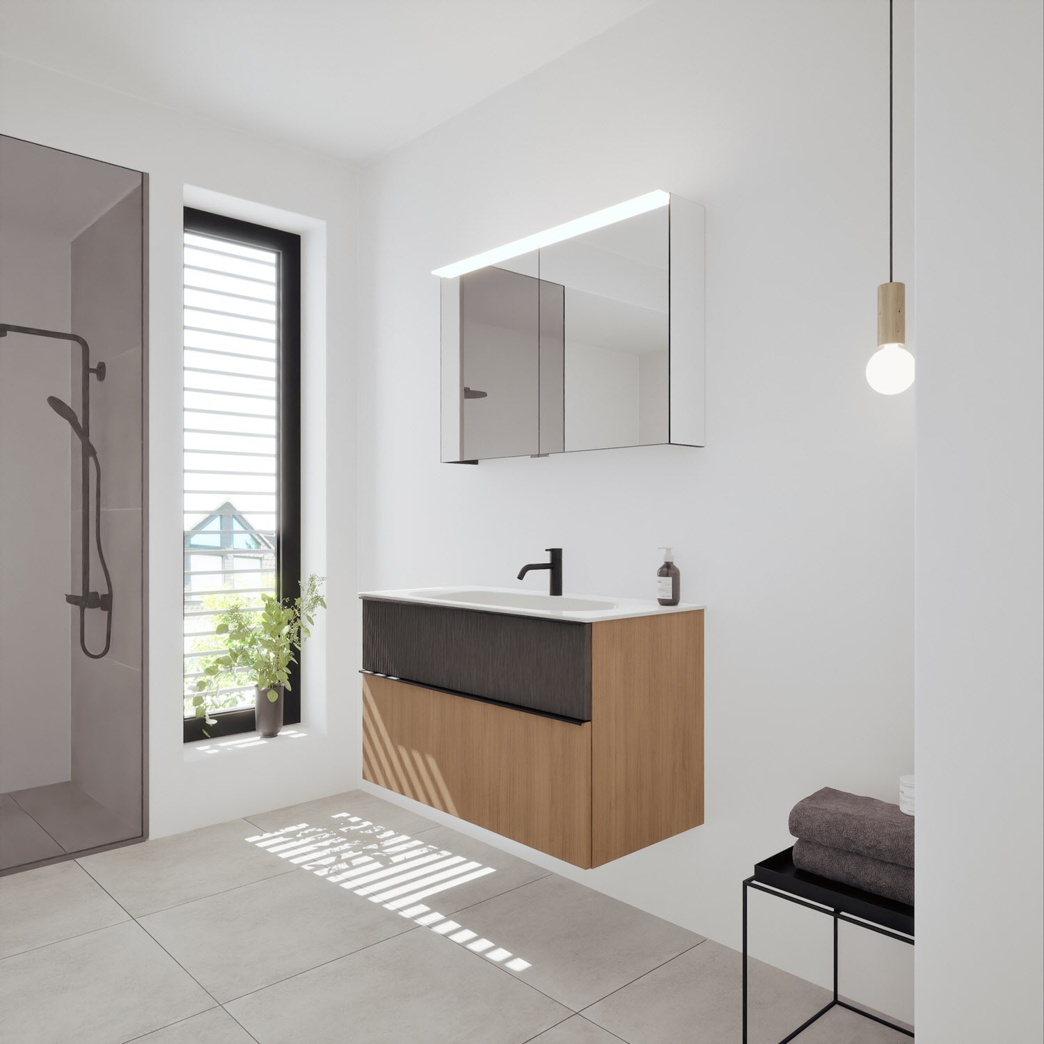 burgbad Fiumo 2.0 Badmöbelset 102 cm mit Waschtisch mit Unterschrank mit Griff G0200 und Spiegelschrank