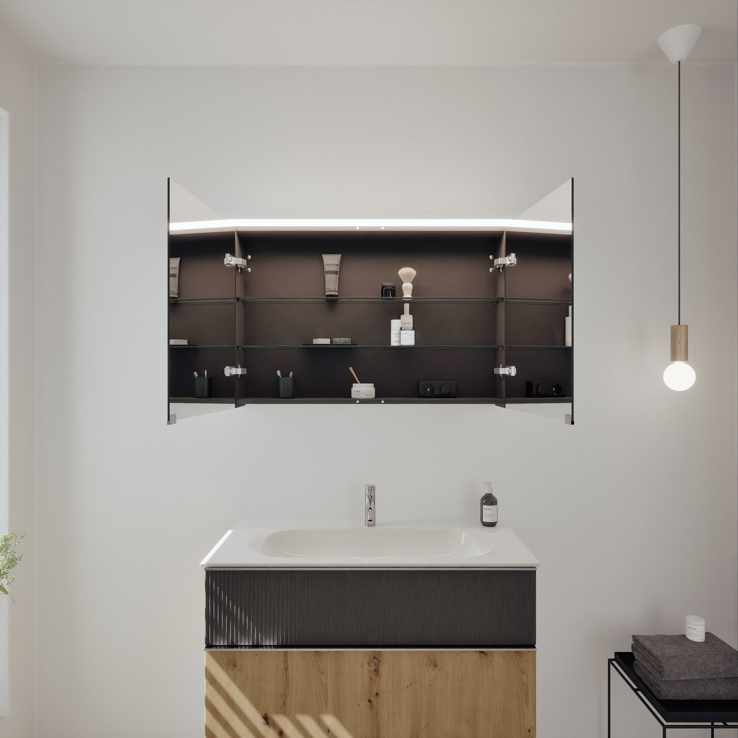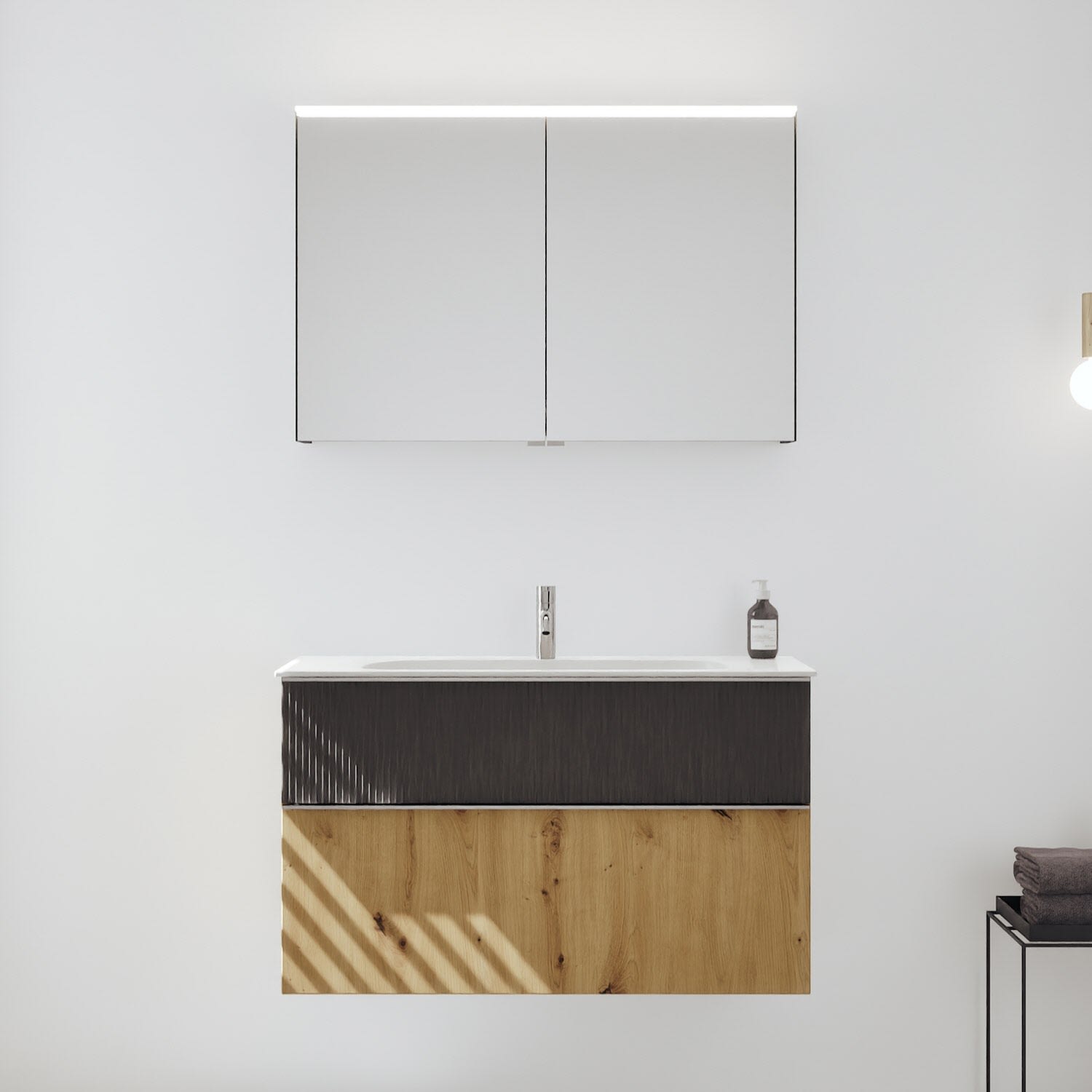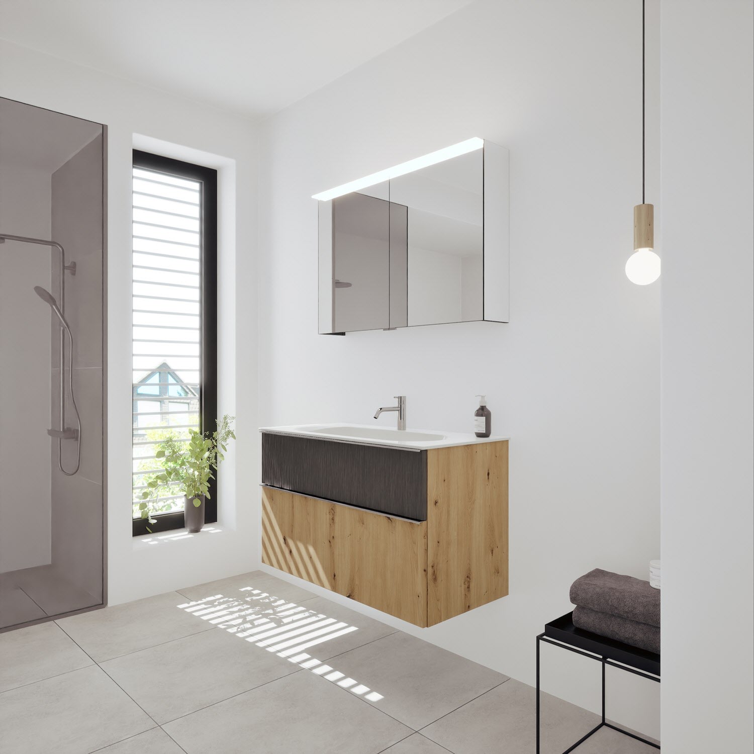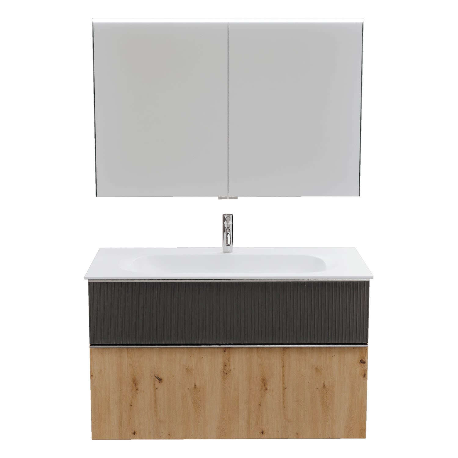 burgbad Fiumo 2.0 Badmöbelset 102 cm mit Waschtisch mit Unterschrank mit Griff G0146 und Spiegelschrank