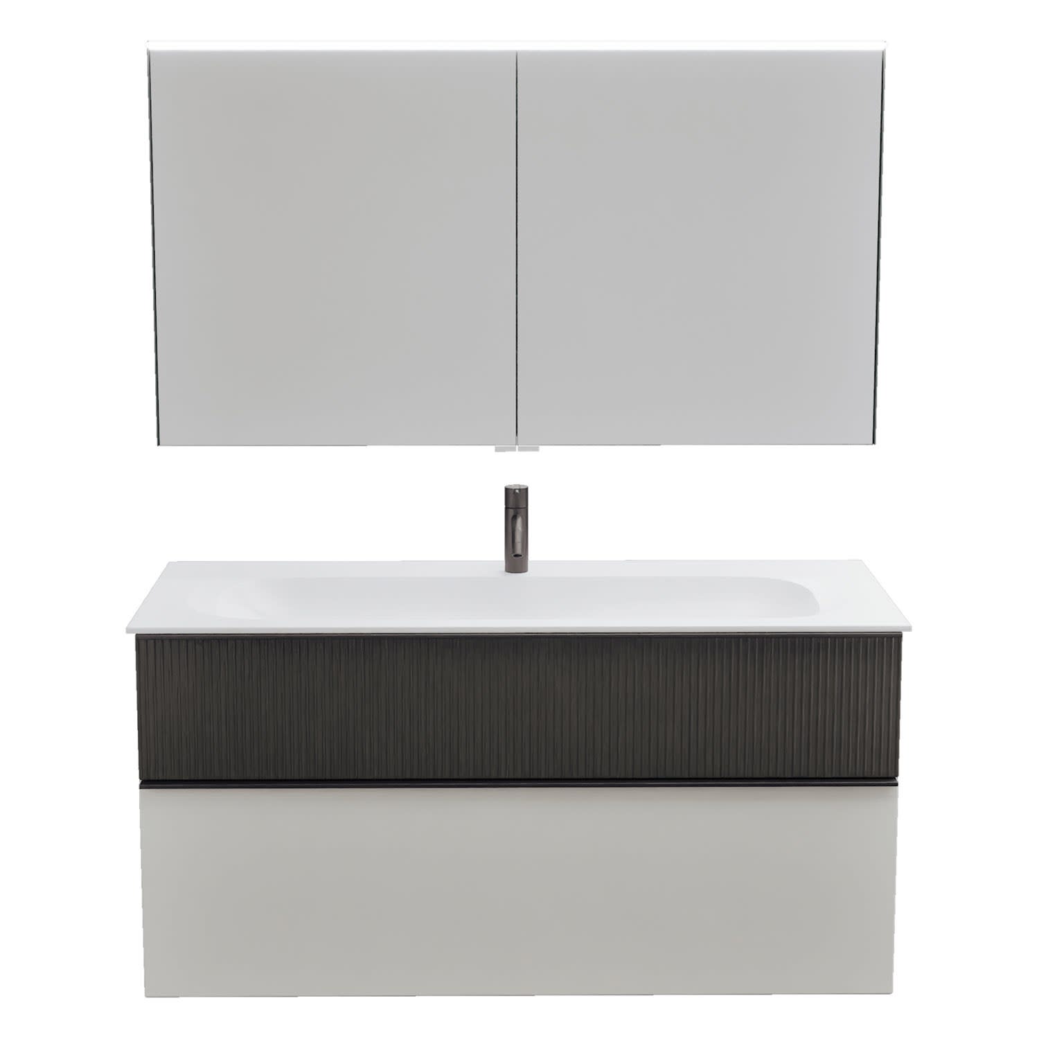 burgbad Fiumo 2.0 Badmöbelset 122 cm mit Waschtisch mit Unterschrank mit Griff G0200 und Spiegelschrank