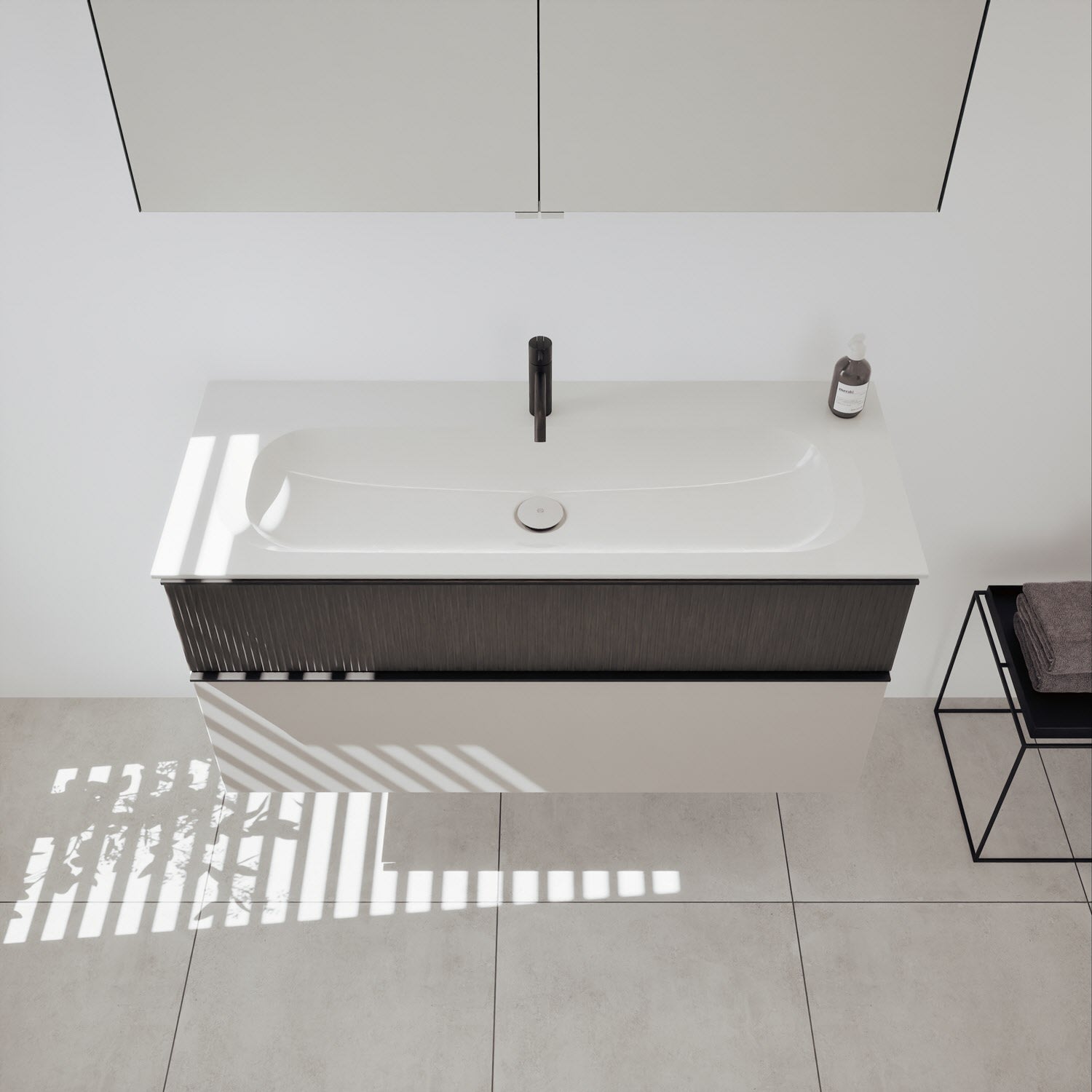 - Spiegelschrank, Waschtischunterschrank, Waschtisch, burgbad cleanFlow, Befestigung außer Stockschrauben
