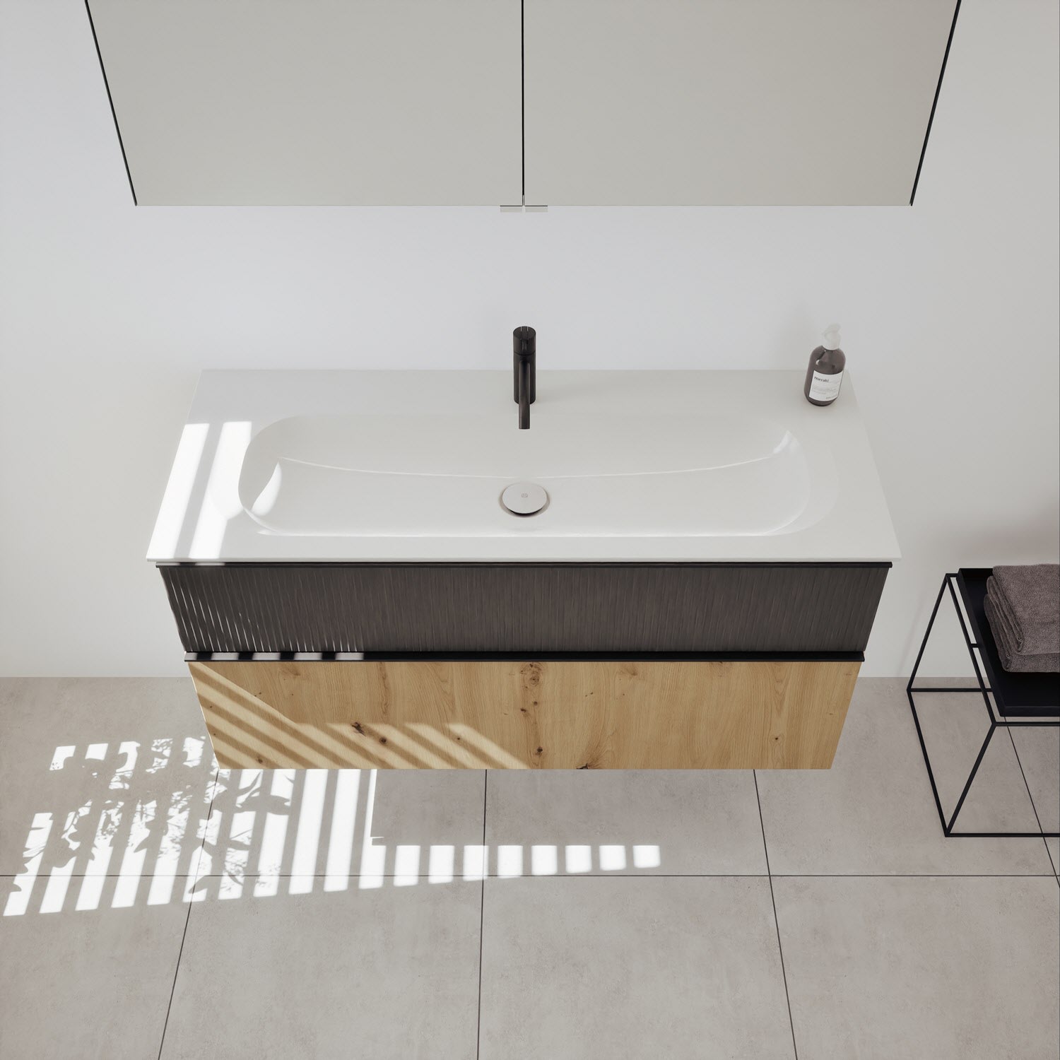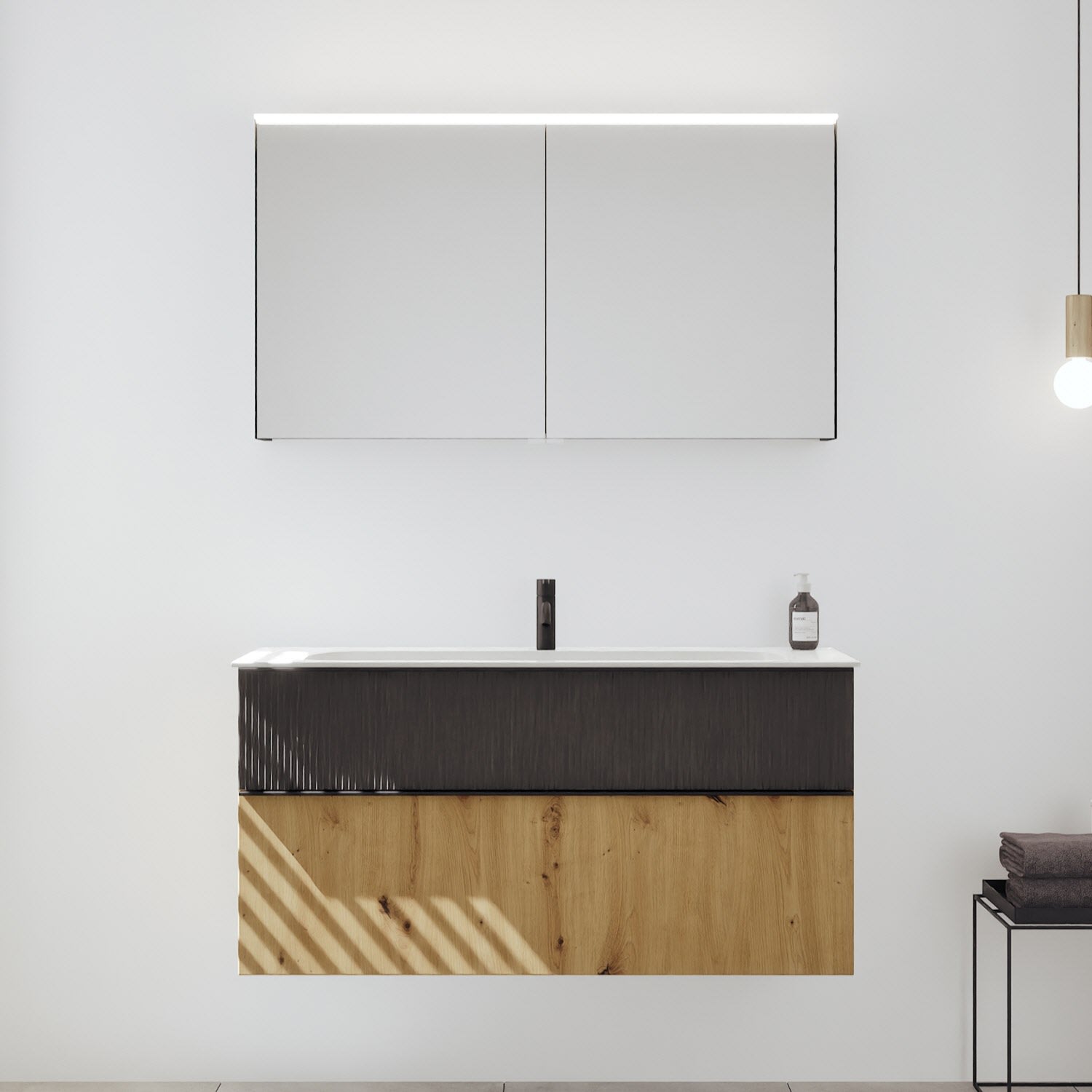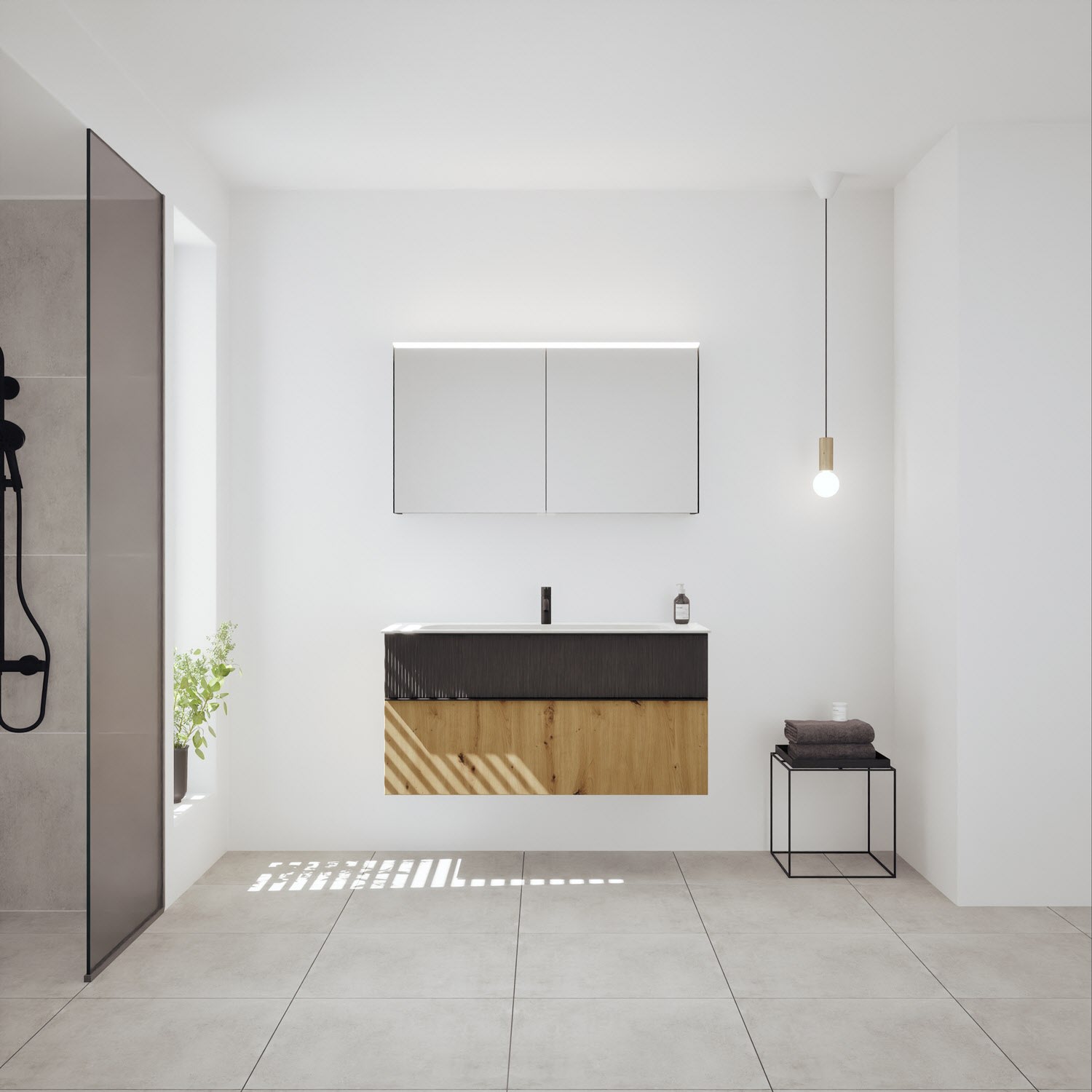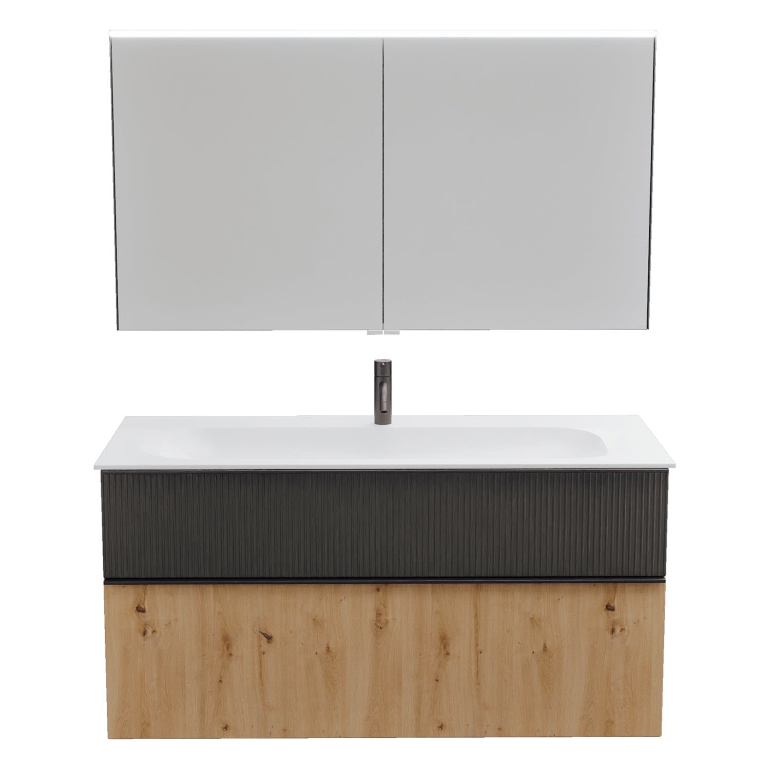 burgbad Fiumo 2.0 Badmöbelset 122 cm mit Waschtisch mit Unterschrank mit Griff G0200 und Spiegelschrank