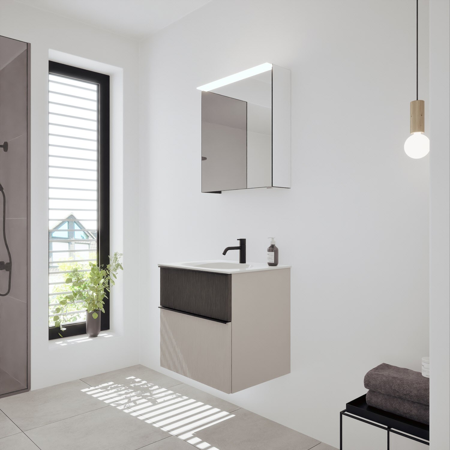 - Spiegelschrank, Waschtischunterschrank, Waschtisch,burgbad cleanFlow, Befestigung außer Stockschrauben