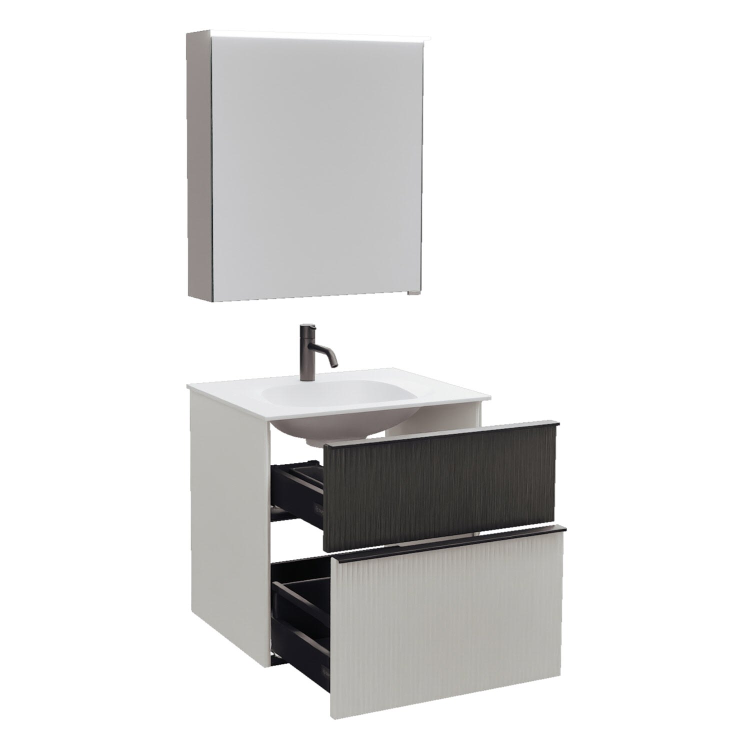 burgbad Fiumo 2.0 Badmöbelset 62 cm mit Waschtisch mit Unterschrank mit Griff G0200 und Spiegelschrank