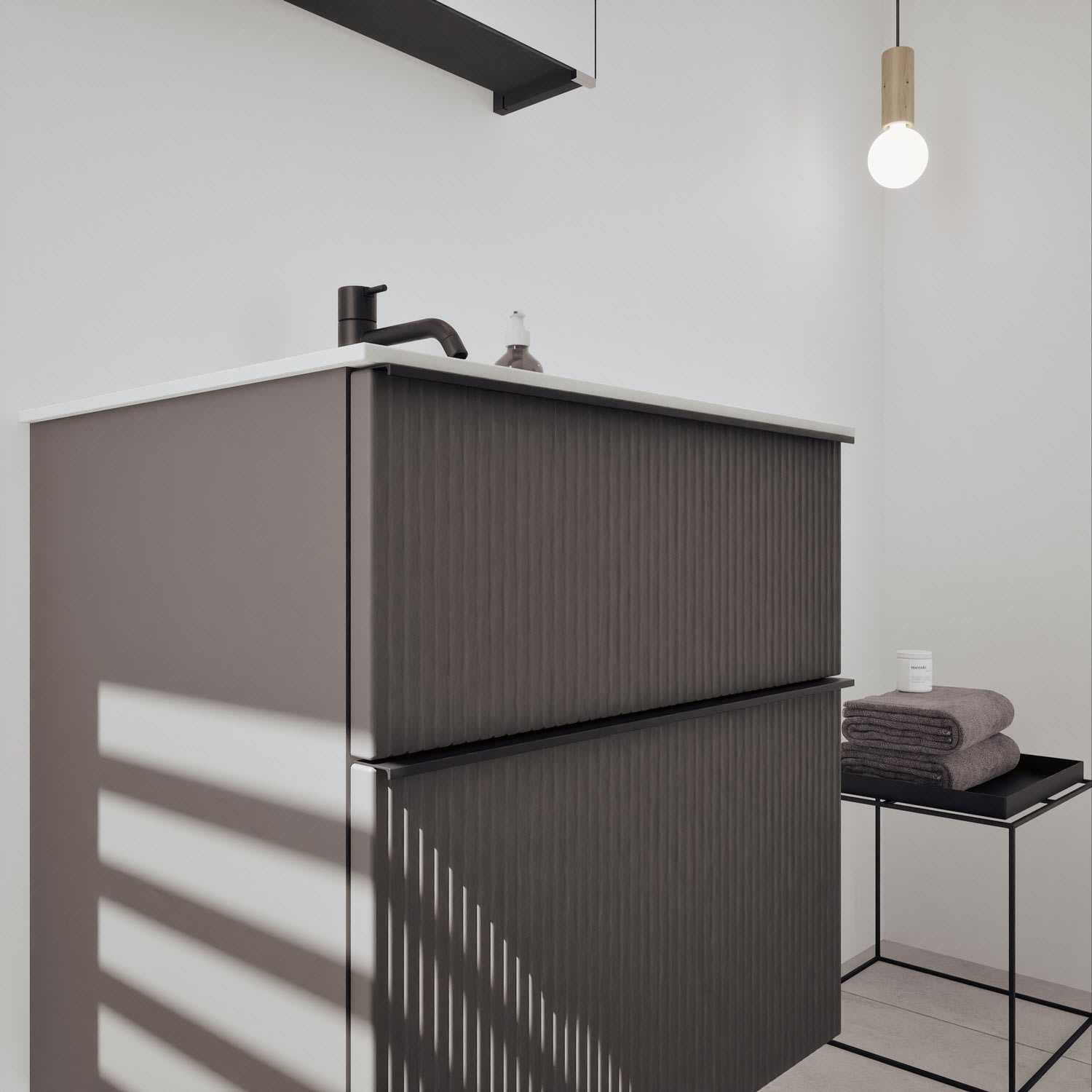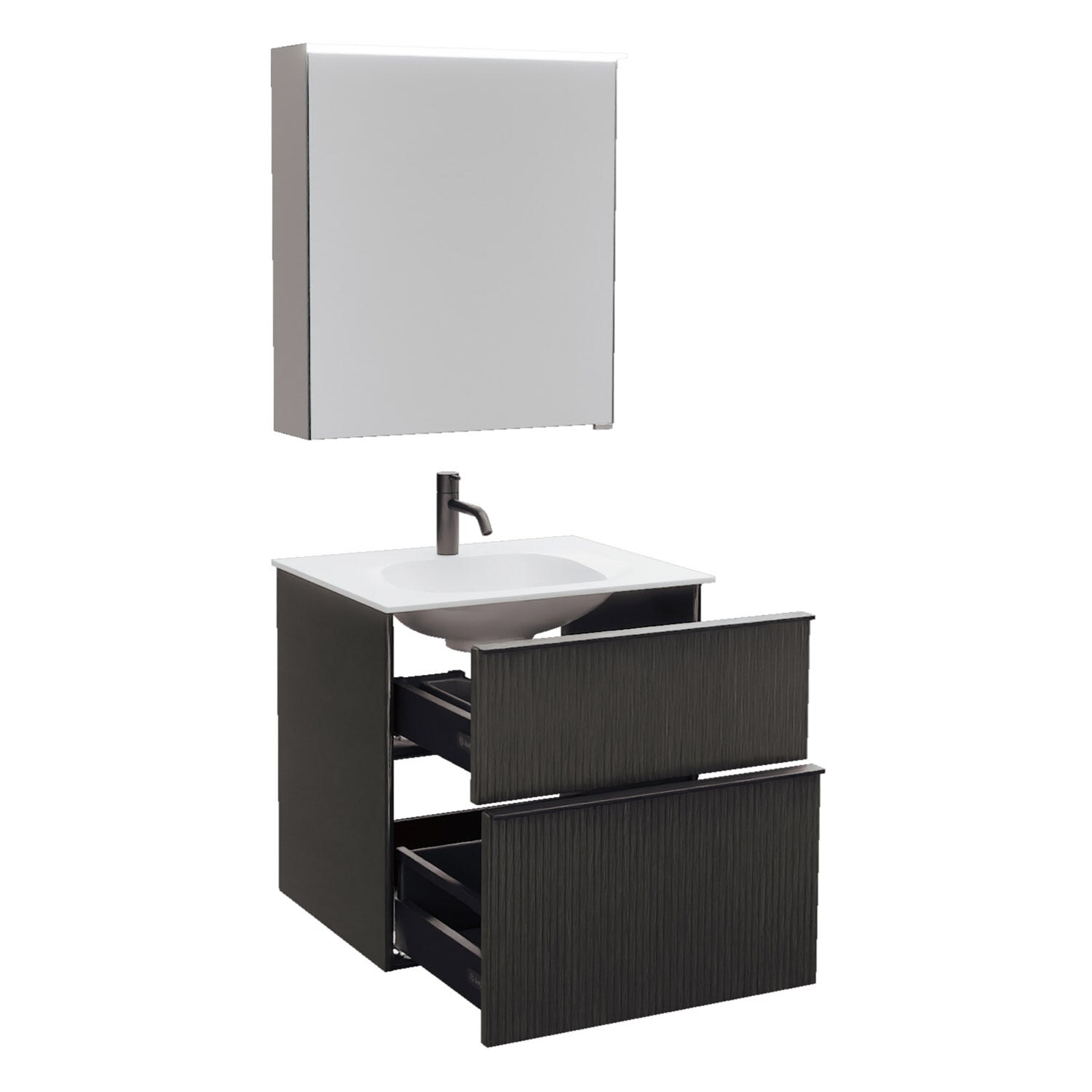 burgbad Fiumo 2.0 Badmöbelset 62 cm mit Waschtisch mit Unterschrank mit Griff G0200 und Spiegelschrank