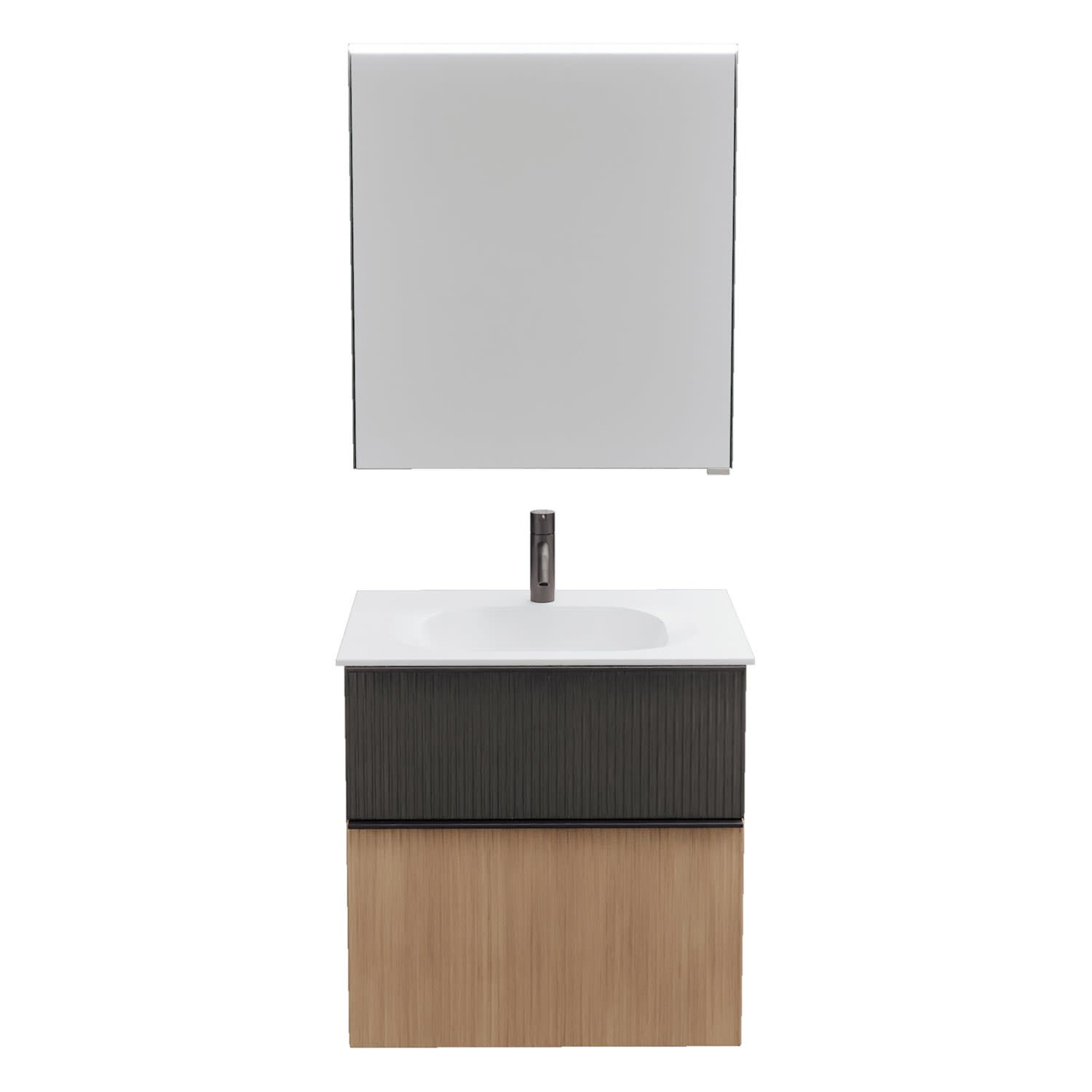 burgbad Fiumo 2.0 Badmöbelset 62 cm mit Waschtisch mit Unterschrank mit Griff G0200 und Spiegelschrank
