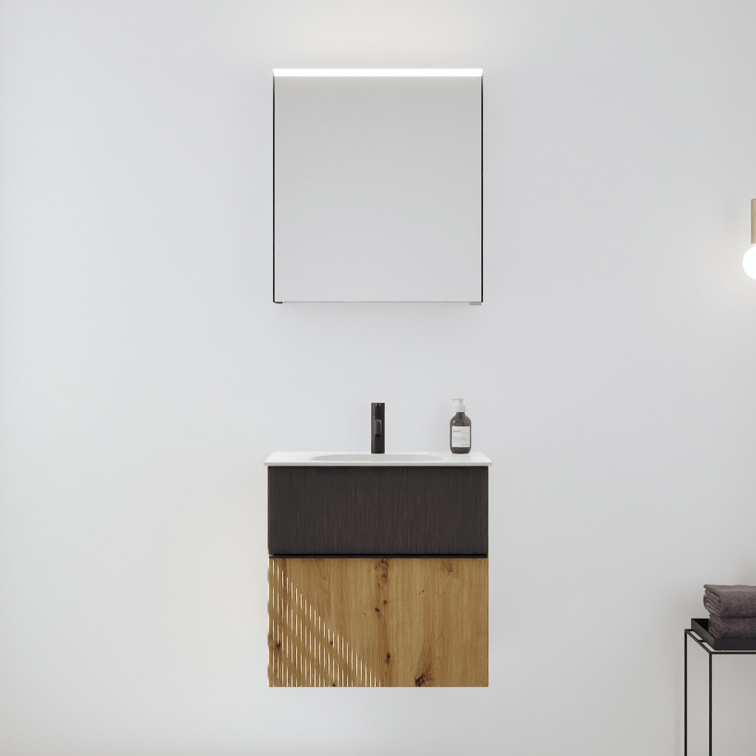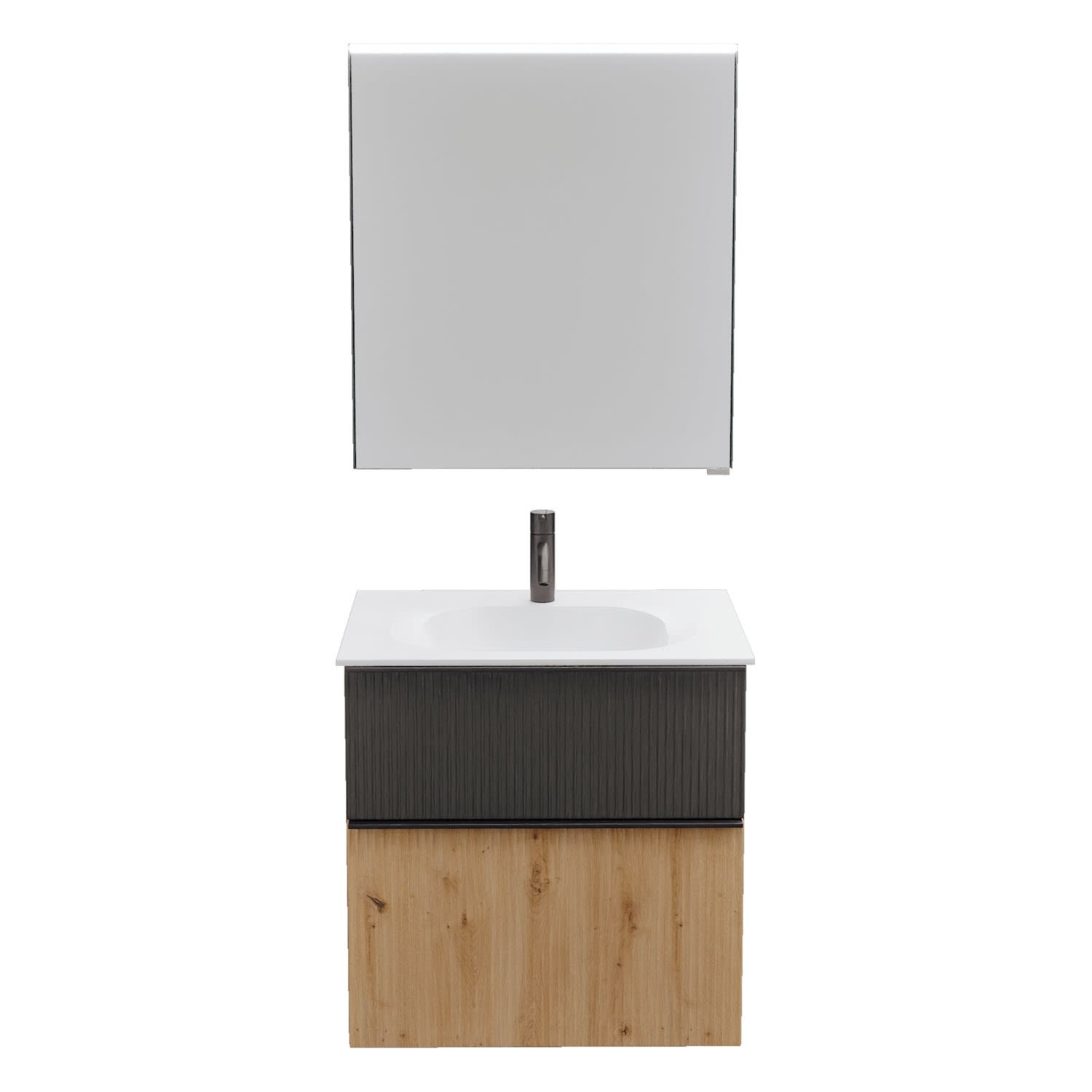 burgbad Fiumo 2.0 Badmöbelset 62 cm mit Waschtisch mit Unterschrank mit Griff G0200 und Spiegelschrank
