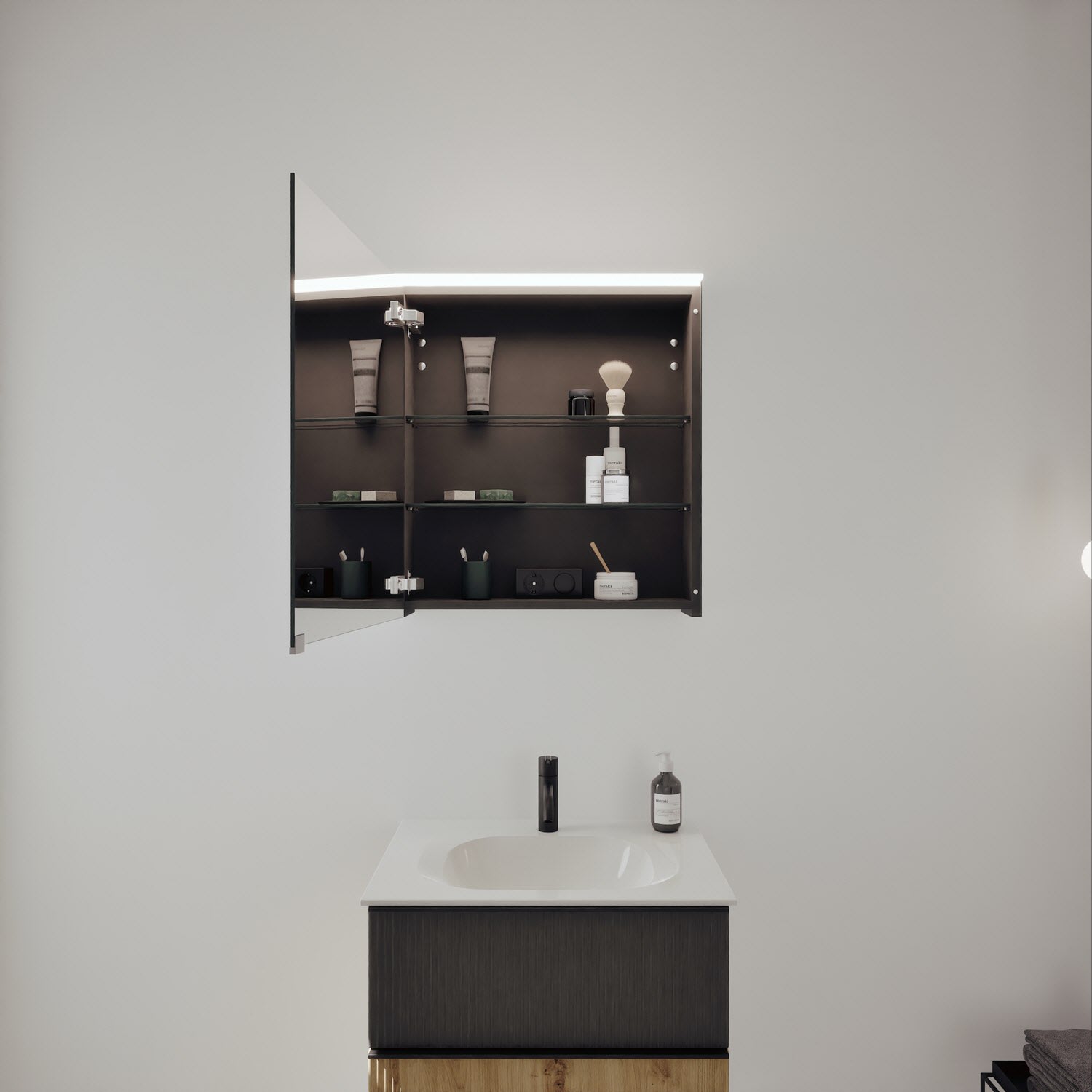 - Spiegelschrank, Waschtischunterschrank, Waschtisch,burgbad cleanFlow, Befestigung außer Stockschrauben