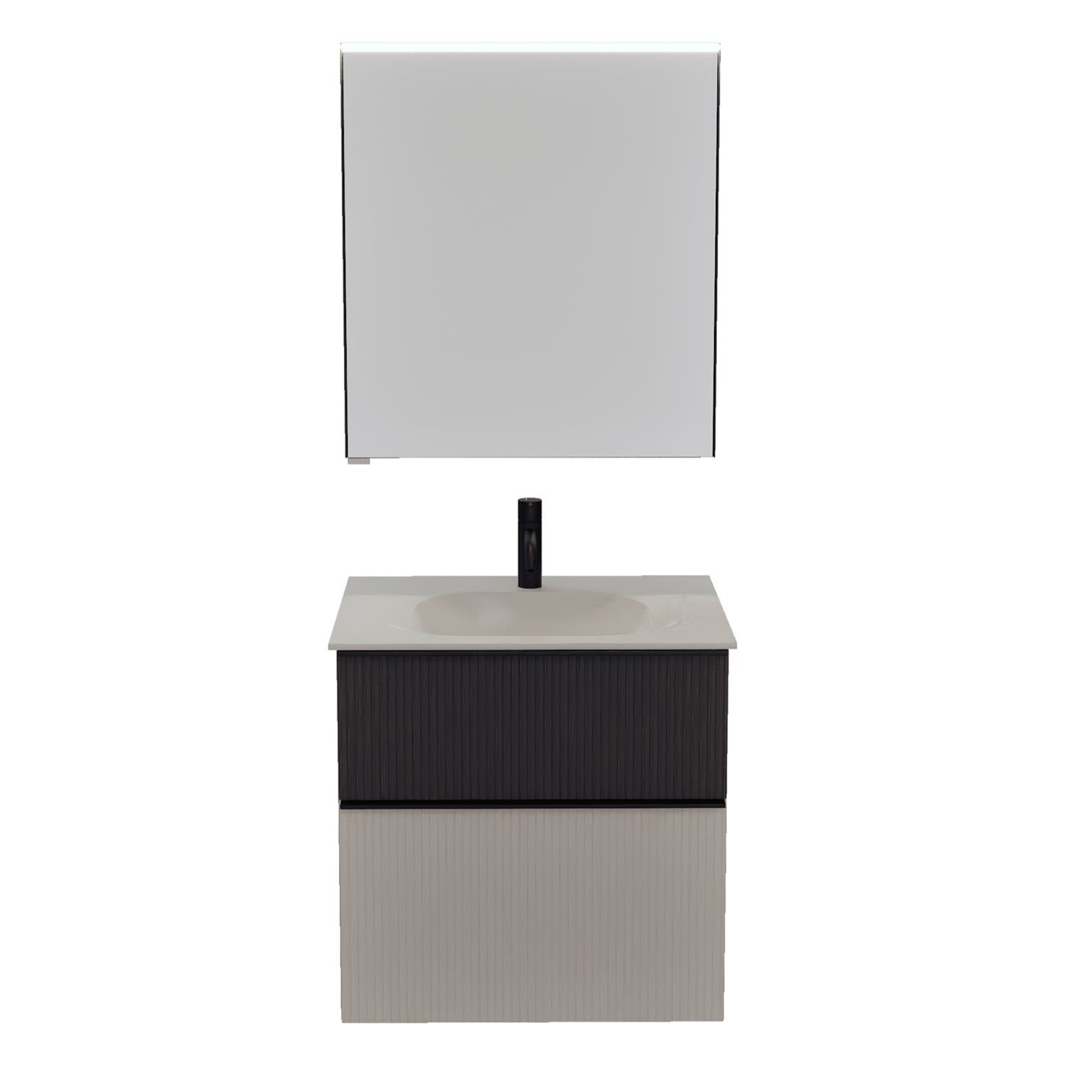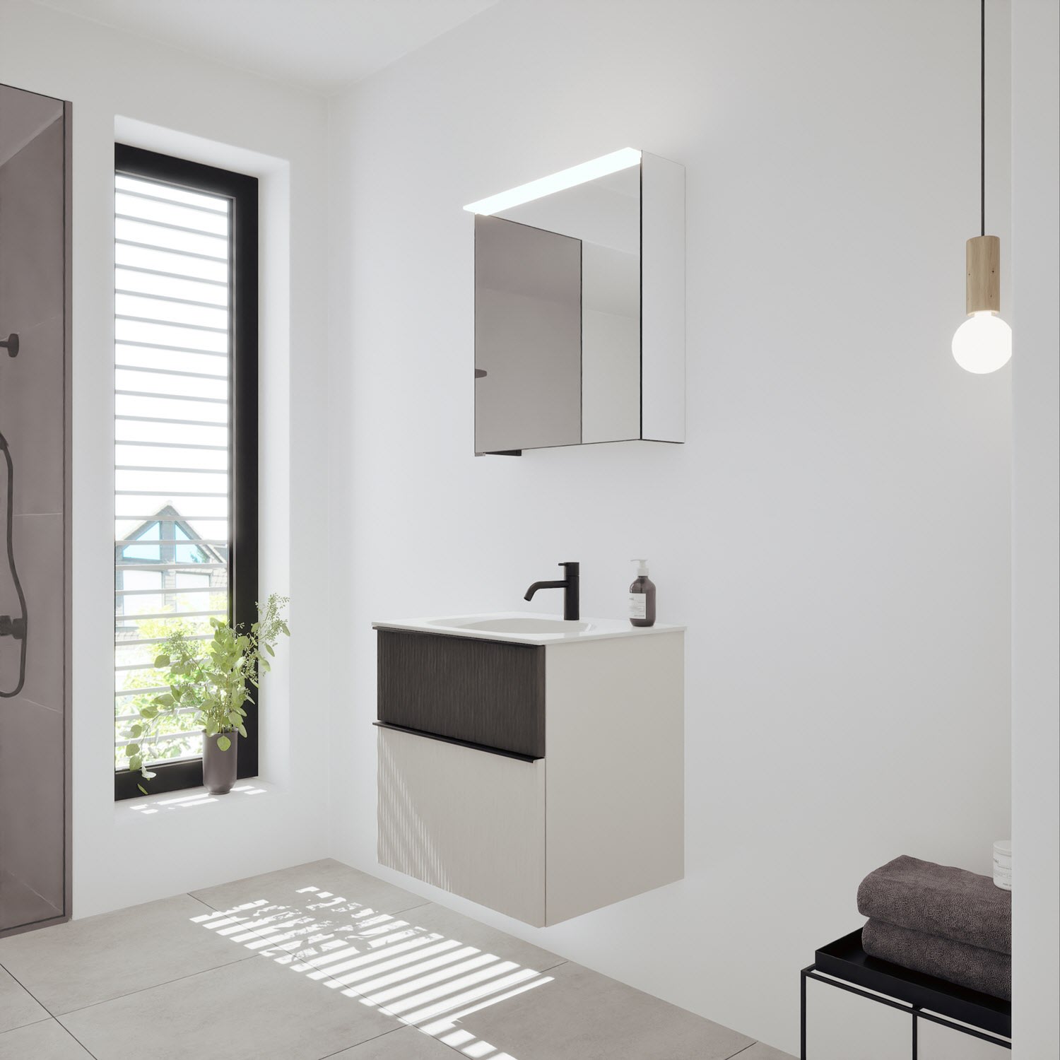 burgbad Fiumo 2.0 Badmöbelset 62 cm mit Waschtisch mit Unterschrank mit Griff G0200 und Spiegelschrank