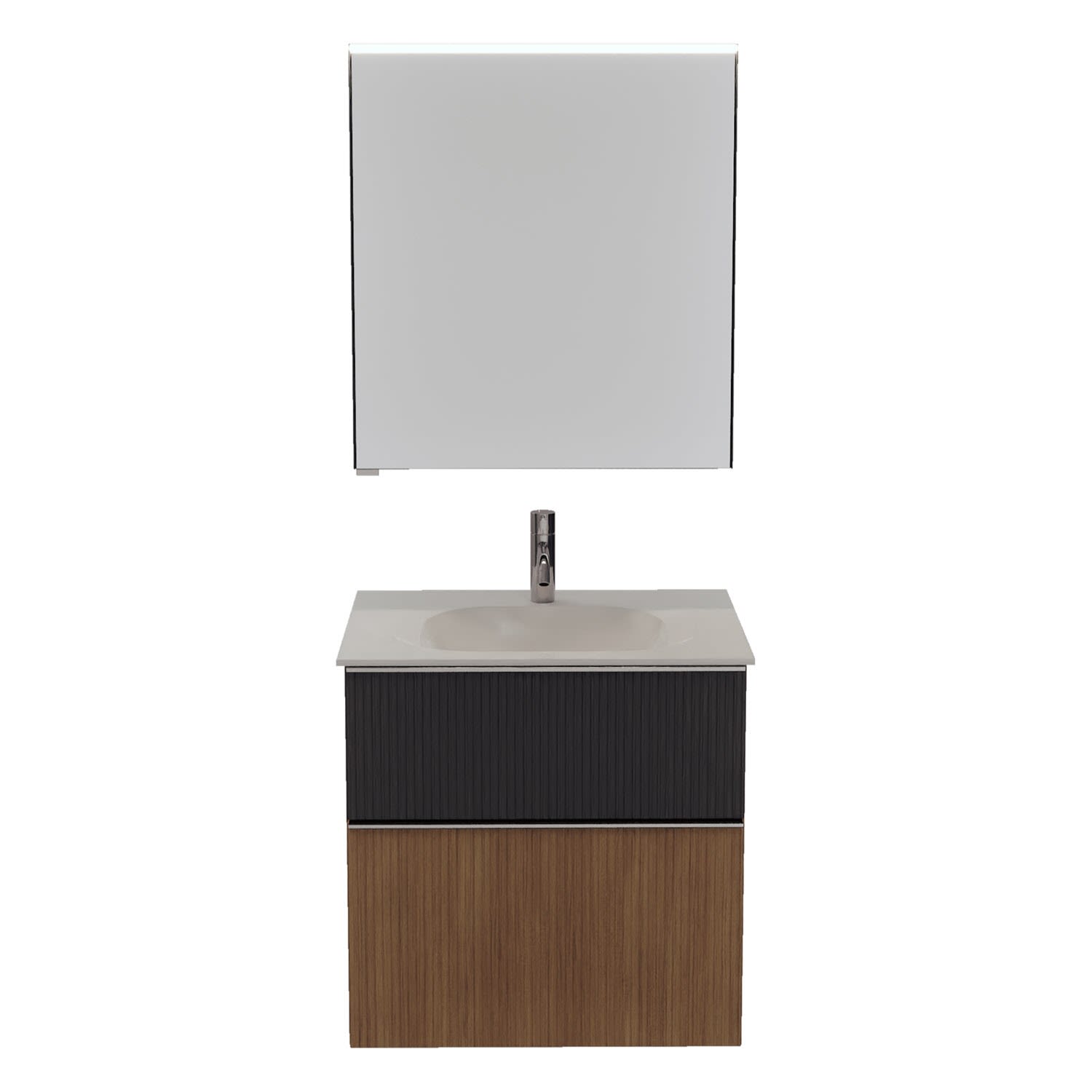 burgbad Fiumo 2.0 Badmöbelset 62 cm mit Waschtisch mit Unterschrank mit Griff G0146 und Spiegelschrank