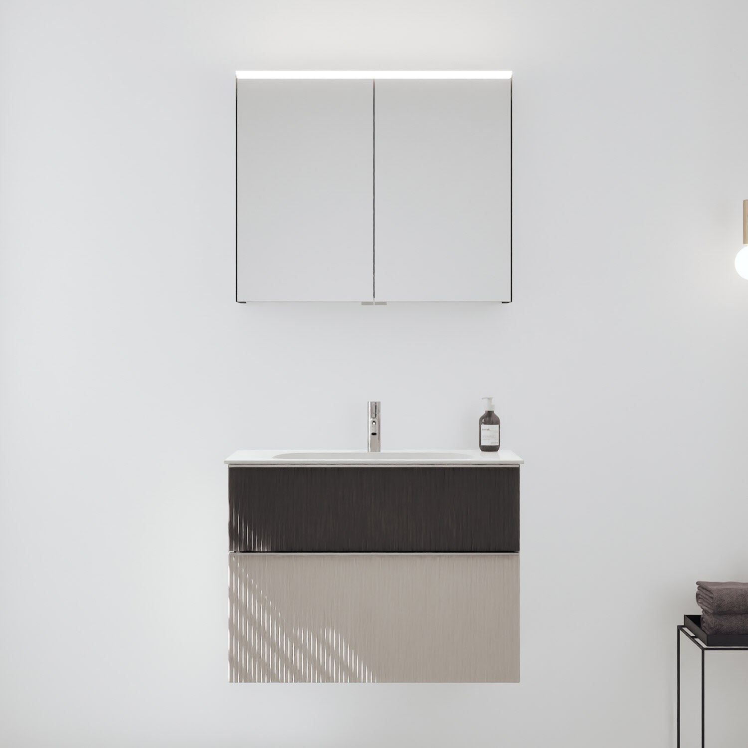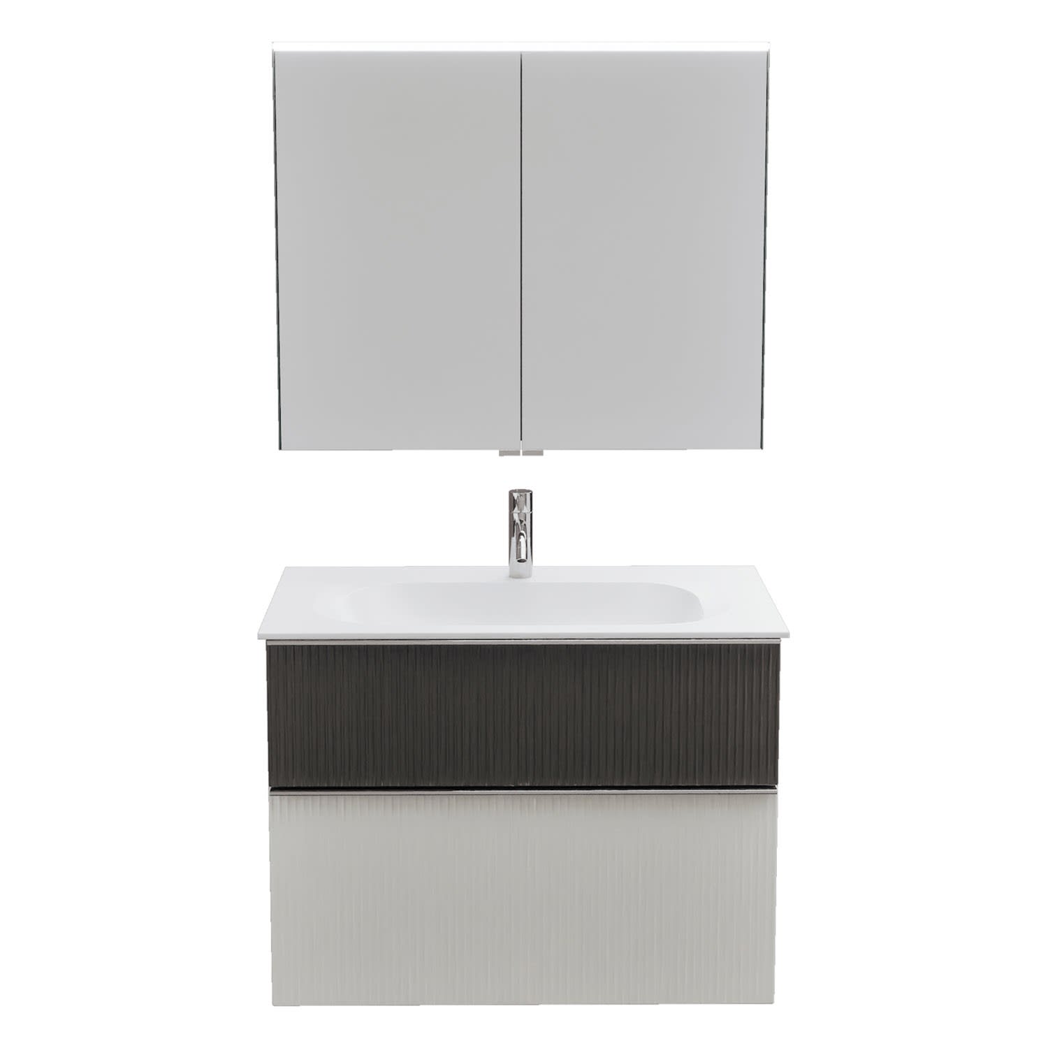 burgbad Fiumo 2.0 Badmöbelset 82 cm mit Waschtisch mit Unterschrank mit Griff G0146 und Spiegelschrank