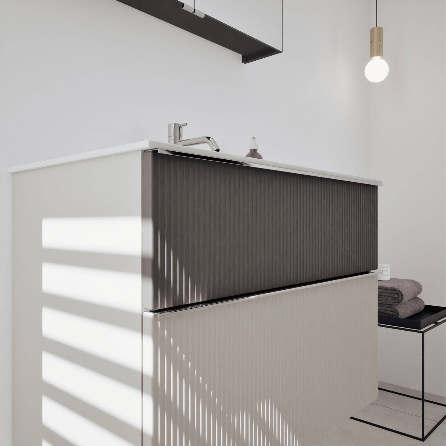 - Spiegelschrank, Waschtischunterschrank, Waschtisch,burgbad cleanFlow, Befestigung außer Stockschrauben
