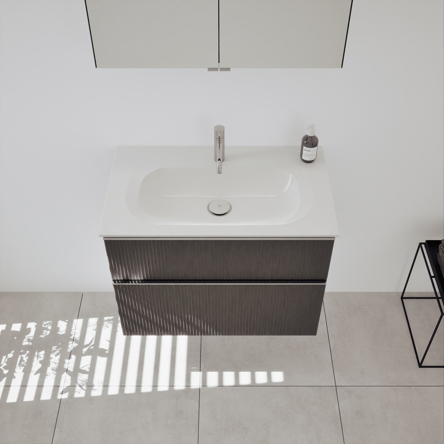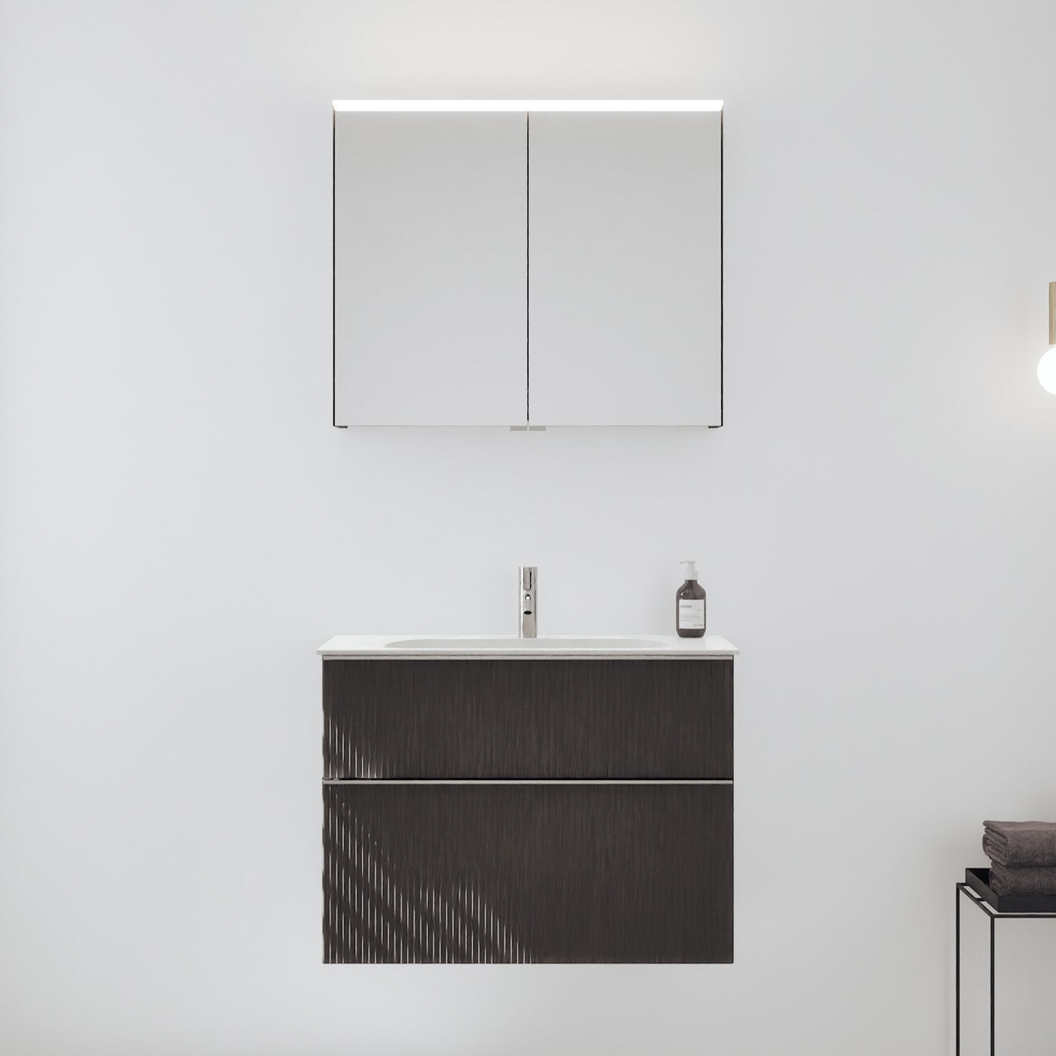 burgbad Fiumo 2.0 Badmöbelset 82 cm mit Waschtisch mit Unterschrank mit Griff G0146 und Spiegelschrank